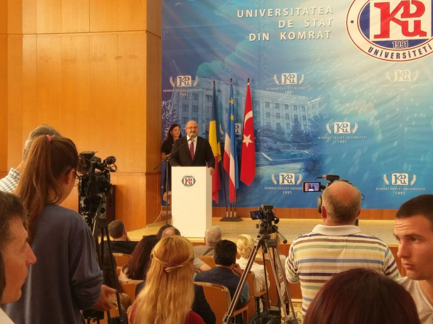 Açılış oturumunda ilk olarak ev sahibi üniversite adına söz alan Rektör Prof. Dr. Sergei Zaharia, konuşmasında Komrat Devlet Üniversitesi’nin 26 yıllık gelişim sürecini özetledi. Başta Türkiye olmak üzere Türk dünyasındaki üniversiteler ile bilimsel işbirliğini arttırmak istediklerini belirten Prof. Dr. Zaharia, kongrenin bu amaçları açısından önemli bir başlangıç olduğunu dile getirdi.