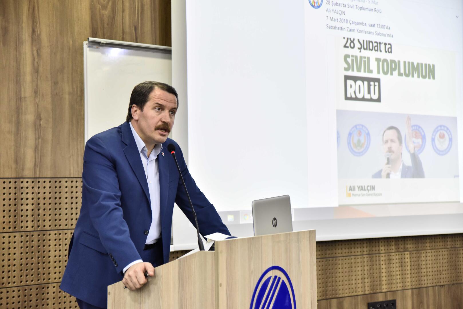 Türkiye’de 28 Şubat sürecinin Erbakan hükümetini yıkmaya yönelik bir operasyon olduğunu belirten Ali Yalçın, “Necmettin Erbakan Müslüman dünyasına yönelik çalışmalar yapmaktaydı. Türkiye yararına yapılan bu çalışmalar emperyalist devletlerin hoşuna gitmedi. Bu durumdan memnun olmayan kişiler Erbakan’ı uzaklaştırmaya yönelik çalışmalara başladı. Bu süreç 54’üncü hükümete karşı olan bir eylemdi” dedi.