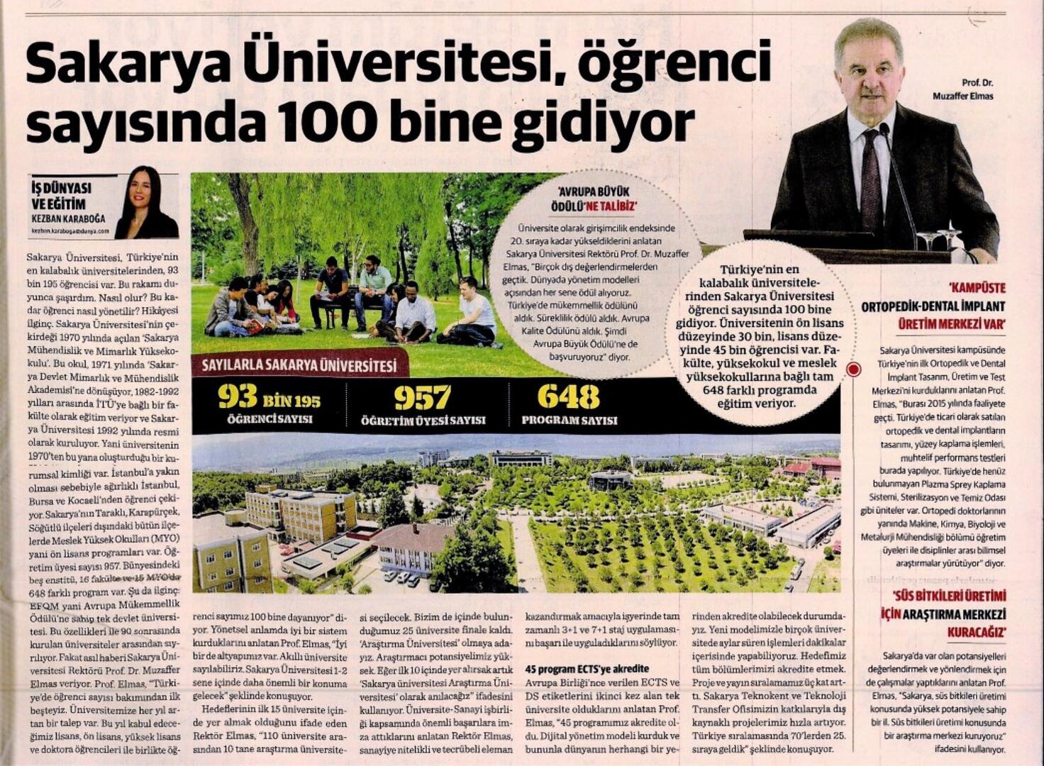 Şu da ilginç: EFQM yani Avrupa Mükemmellik Ödülü’ne sahip tek devlet üniversitesi. Bu özellikleri ile 90 sonrasında kurulan üniversiteler arasından sıyrılıyor. Fakat asıl haberi Sakarya Üniversitesi Rektörü Prof. Dr. Muzaffer Elmas veriyor. Prof. Elmas, “Türkiye’de öğrenci sayısı bakımından ilk beşteyiz. Üniversitemize her yıl artan bir talep var. Bu yıl kabul edeceğimiz lisans, ön lisans, yüksek lisans ve doktora öğrencileri ile birlikte öğrenci sayımız 100 bine dayanıyor” diyor. Yönetsel anlamda iyi bir sistem kurduklarını anlatan Prof. Elmas, “İyi bir de altyapımız var. Akıllı üniversite sayılabiliriz. Sakarya Üniversitesi 1-2 sene içinde daha önemli bir konuma gelecek” şeklinde konuşuyor.