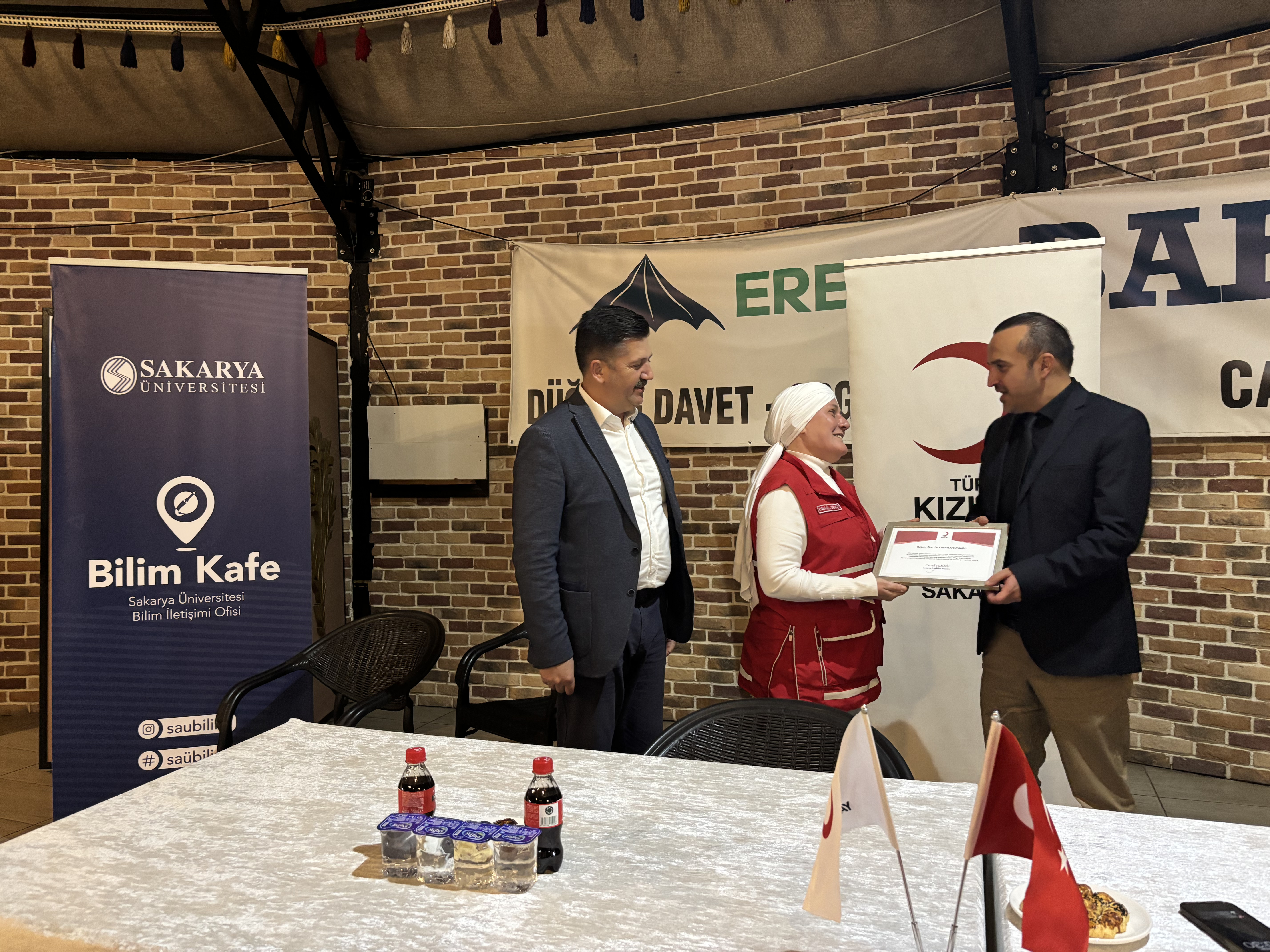 Söyleşi sonunda, paylaştığı bilgi ve deneyimler dolayısıyla Doç. Dr. Onur Karakayalı’ya teşekkür belgesi Sakarya Türk Kızılay tarafından takdim edildi. Bilinçli toplum, doğru planlama ve gönüllülük vurgusunun öne çıktığı etkinlik, Karakayalı'nın, katılımcılara teşekkür etmesiyle sona erdi.