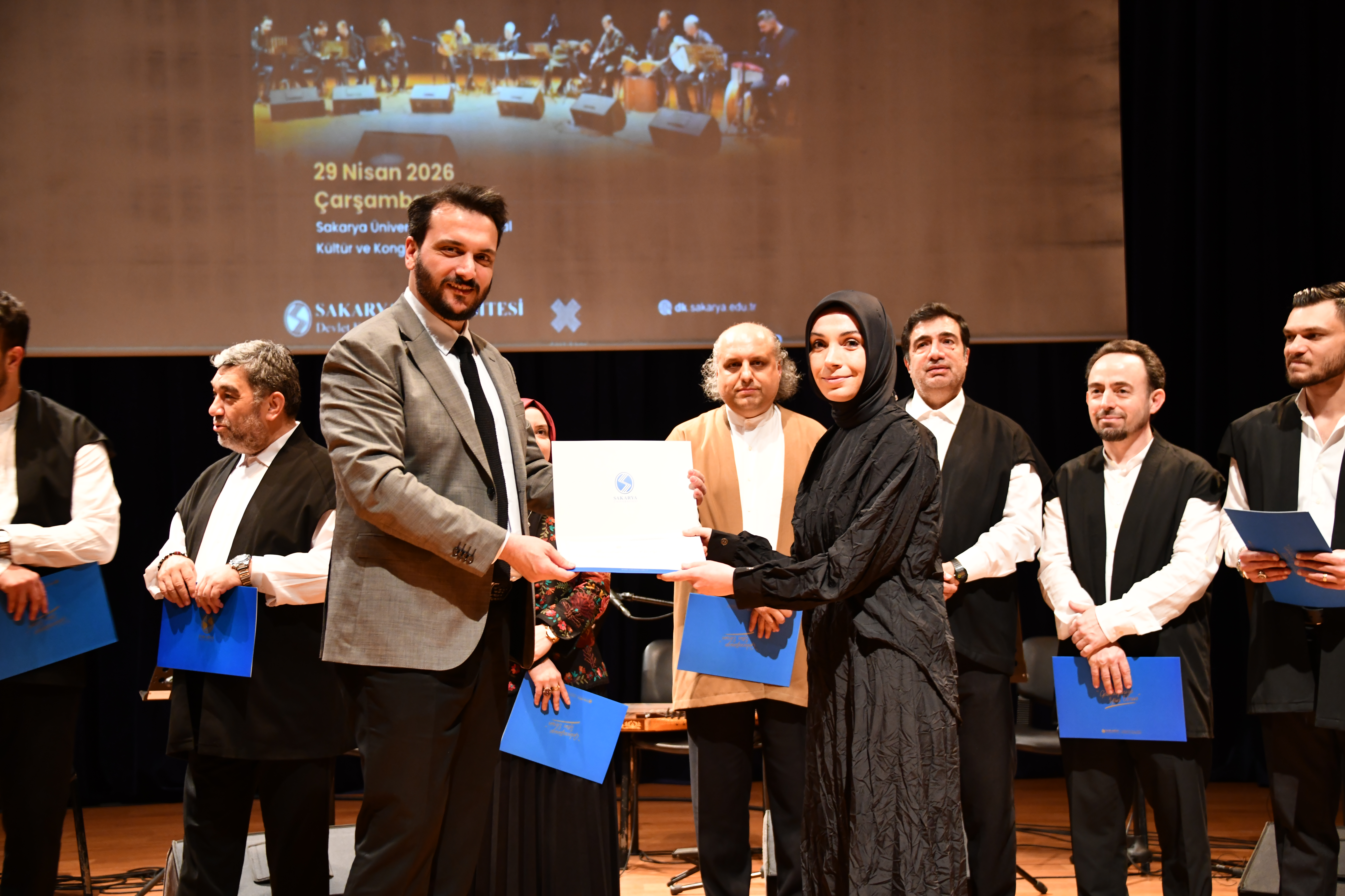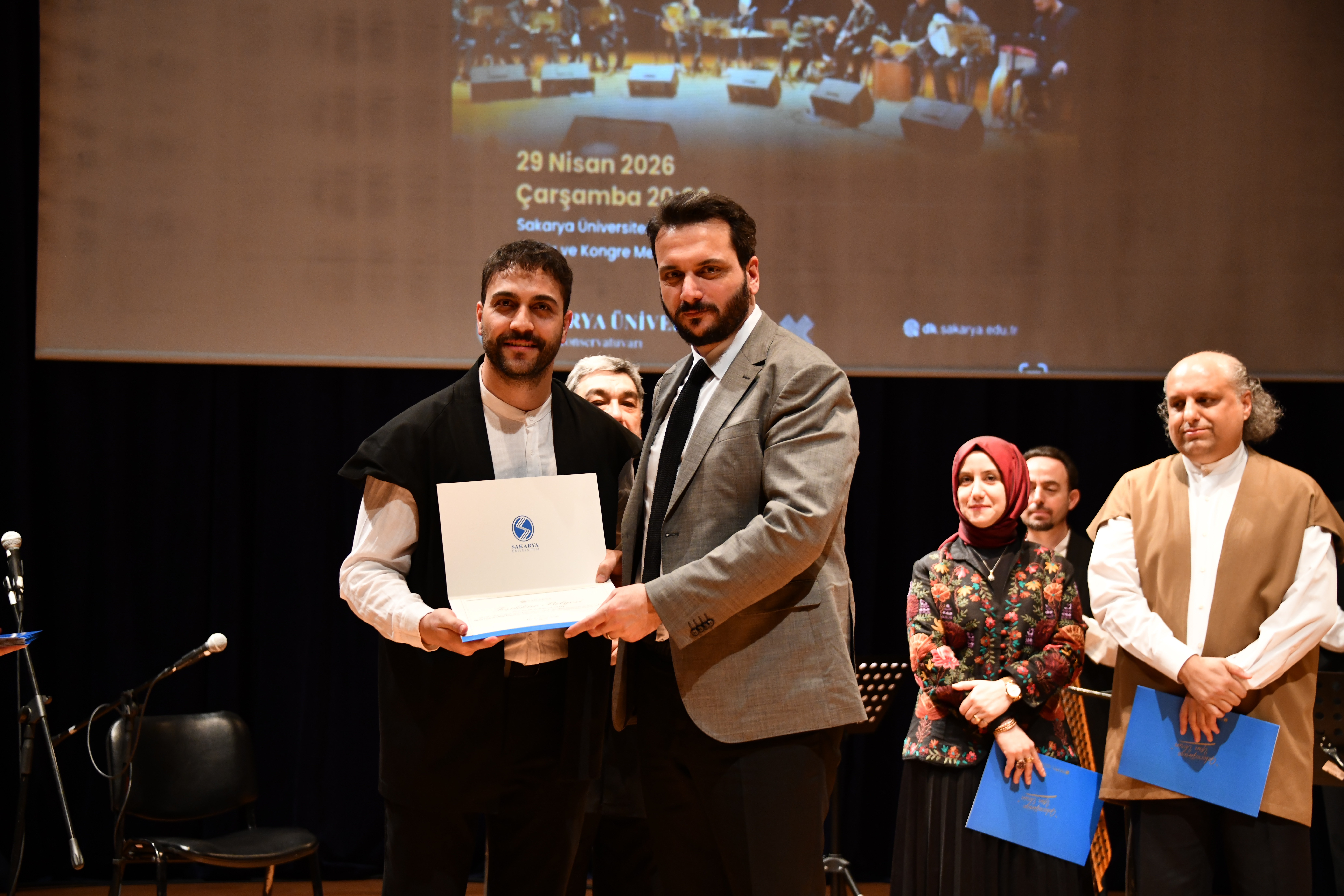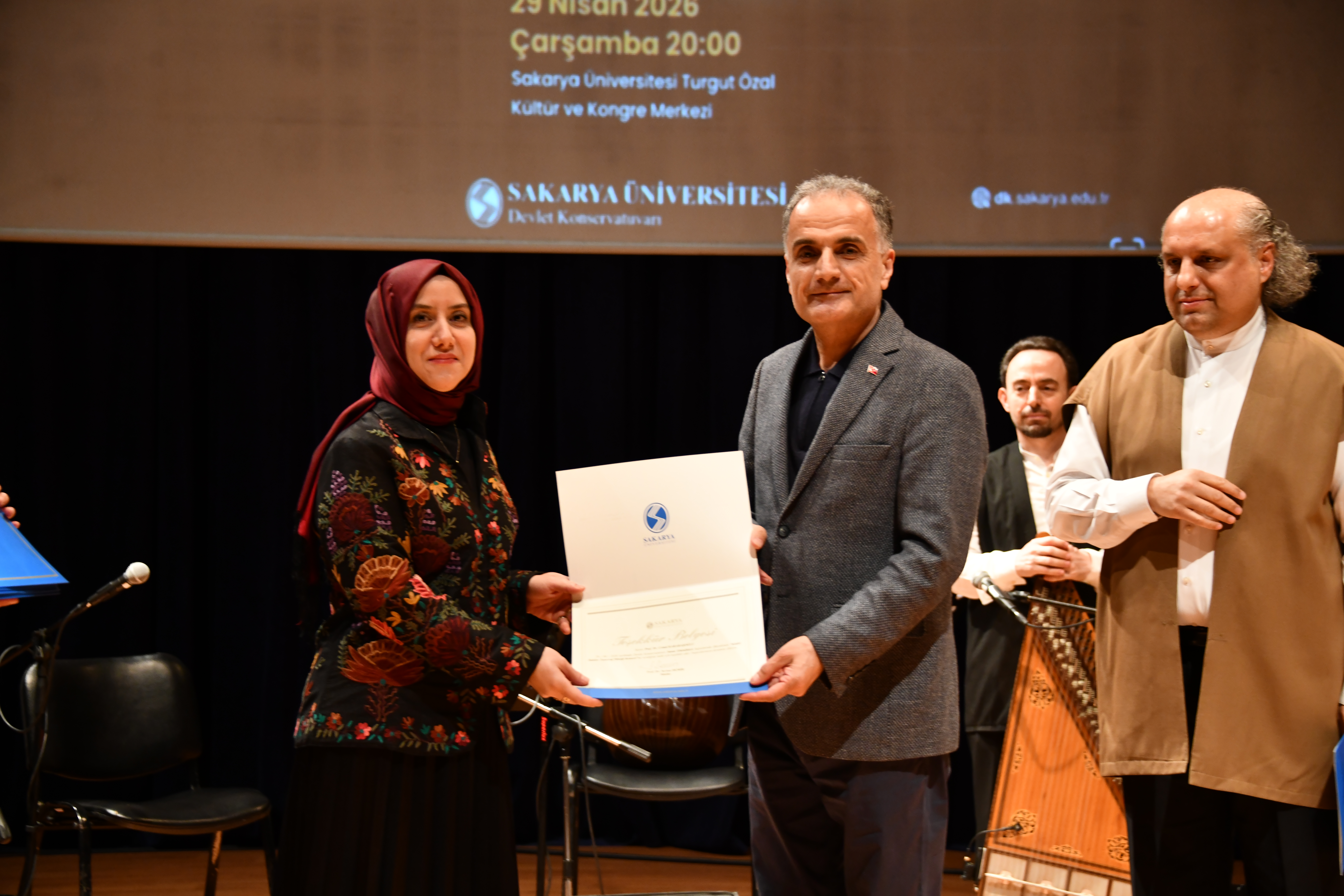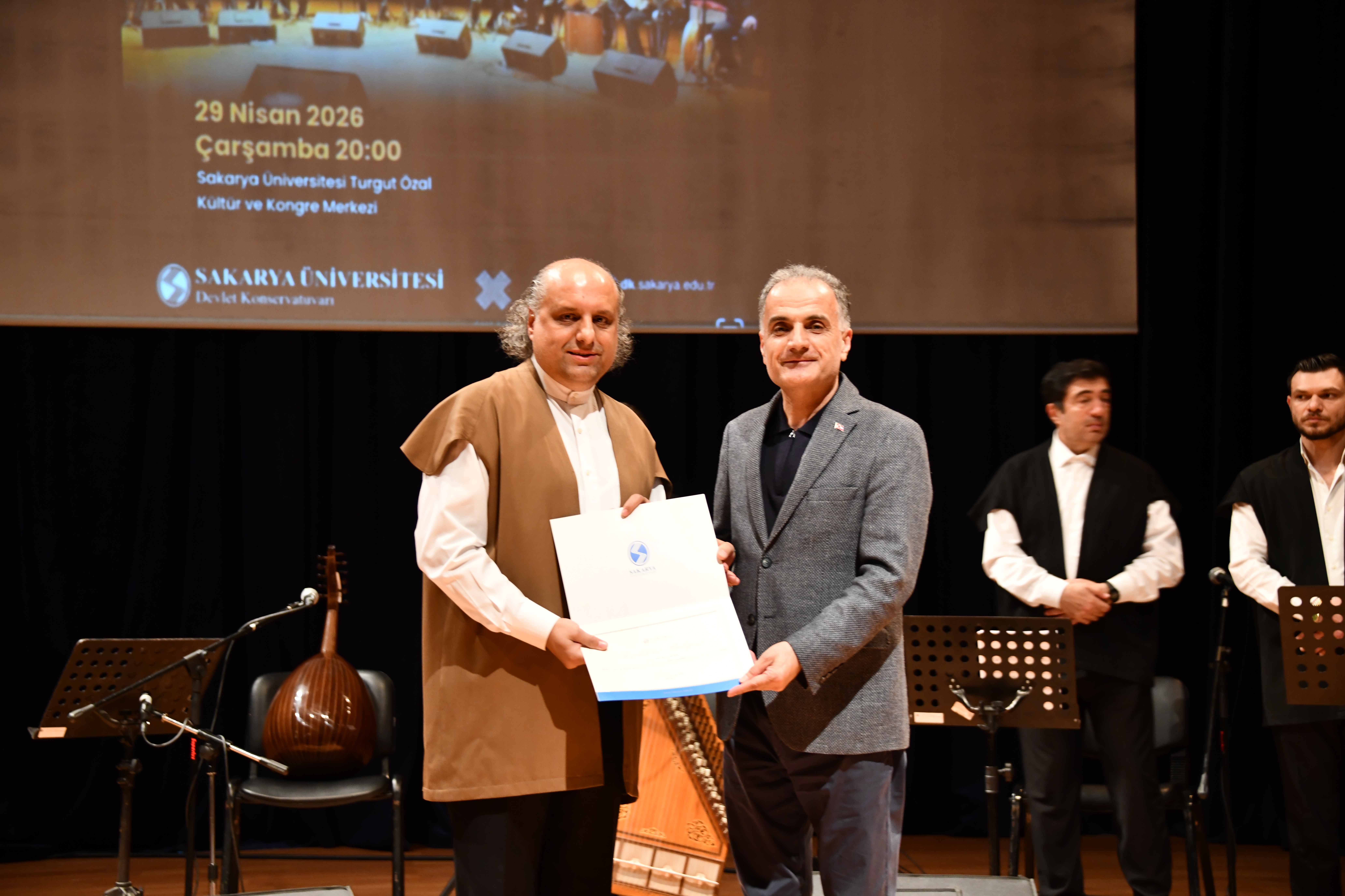 Zengin saz heyetiyle dikkat çeken konserde; bendirde Prof. Dr. Cemal Karabaşoğlu ve Merve Gülsuyu Özsağır, neyde Dr. Öğr. Üyesi Cengiz Atlan, kanunda Fatih Erdaş, dairede Muhammed Ali Genç ve kemanda Hasan Çizmelioğlu performans sergiledi.