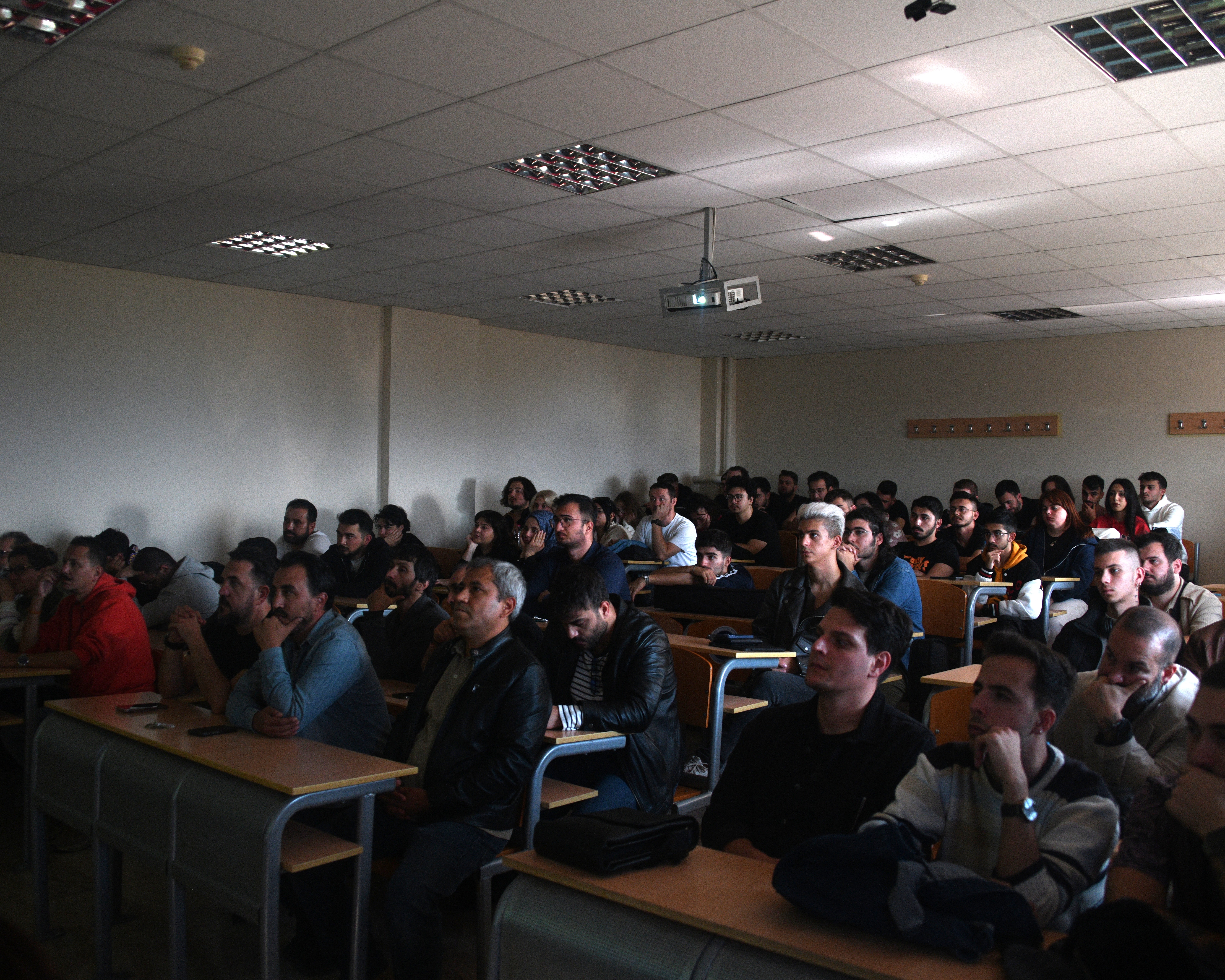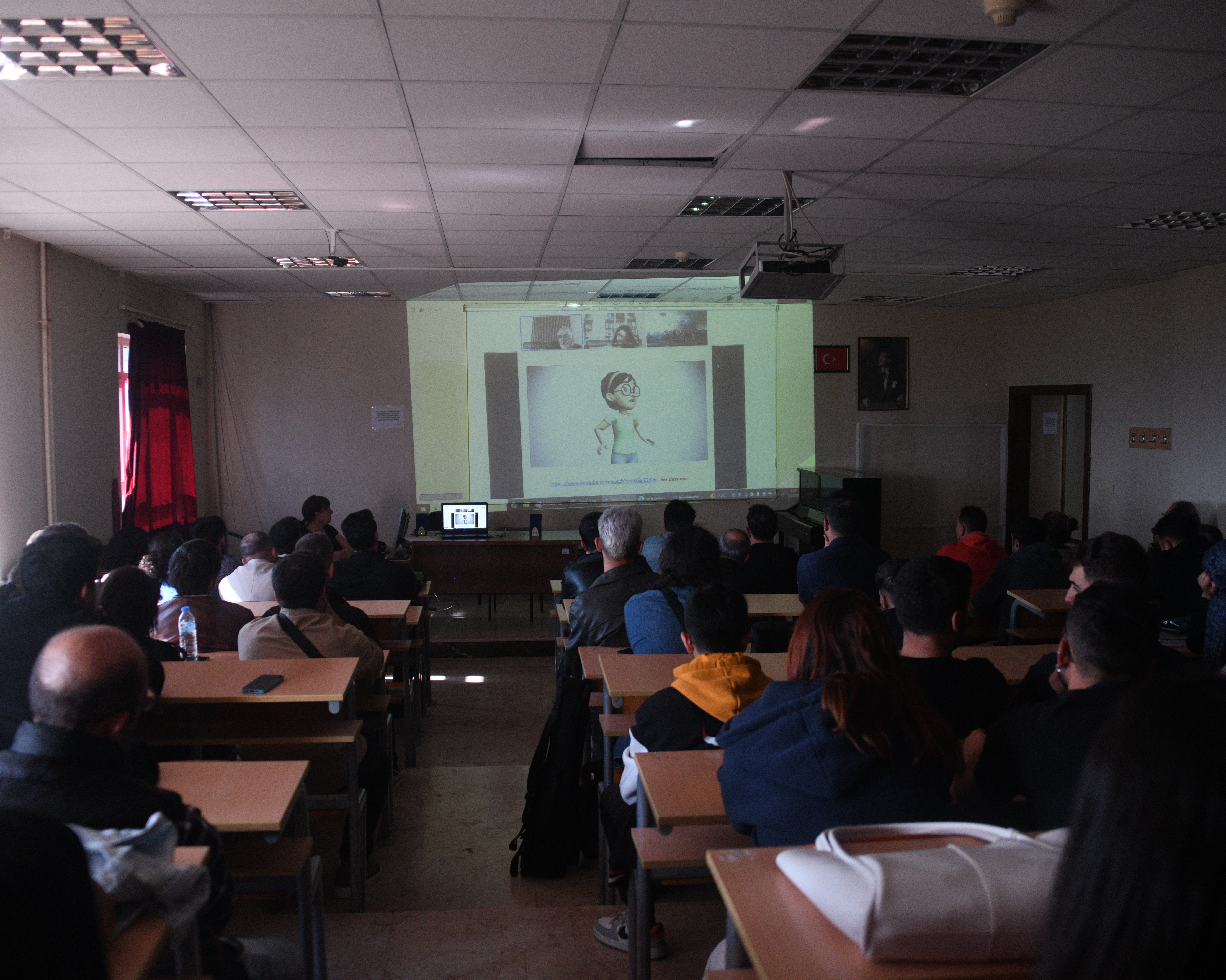 Kulağın yapısı ve işitme sürecine de değinilen sunumda, sesin kulak zarından iç kulağa iletilişi animasyonlarla gösterildi. İnsan kulağının 16-20 Hz ile 20 bin Hz arasındaki frekansları duyabildiği, yaş ilerledikçe bu sınırların daraldığı aktarıldı. Ayrıca müzikte genellikle 5 bin Hz’e kadar olan seslerin kullanıldığı, 20 bin Hz üzerindeki seslerin ultrasonik, 20 Hz altındaki seslerin ise infrasonik olarak adlandırıldığı vurgulandı.