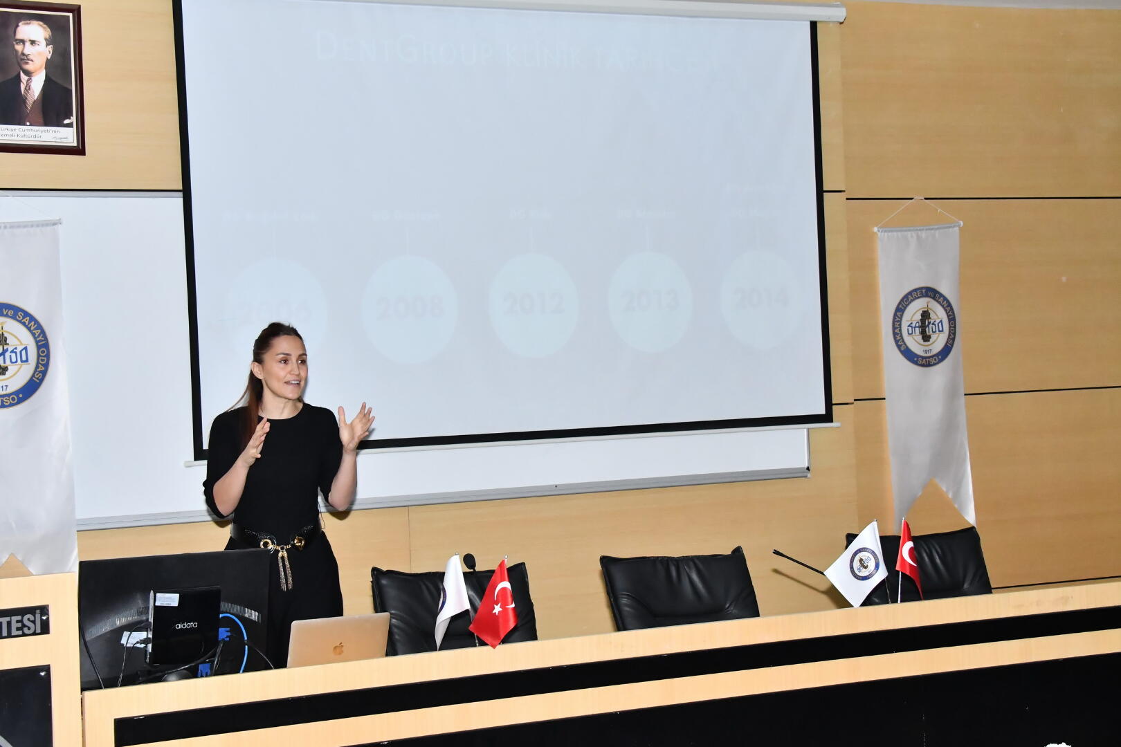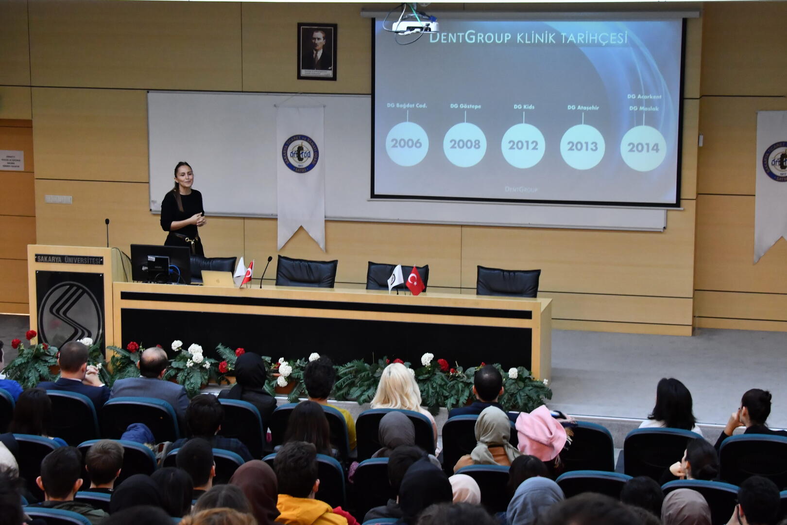 SAÜ Kültür ve Kongre Merkezinde gerçekleşen söyleşiye Diş Hekimliği Fakültesi Dekanı Prof. Dr. Hakan Akın, Dentgroup Yöneticisi diş hekimi Neşve Kayabaşoğlu ile öğretim üyeleri ve öğrenciler katıldı.
