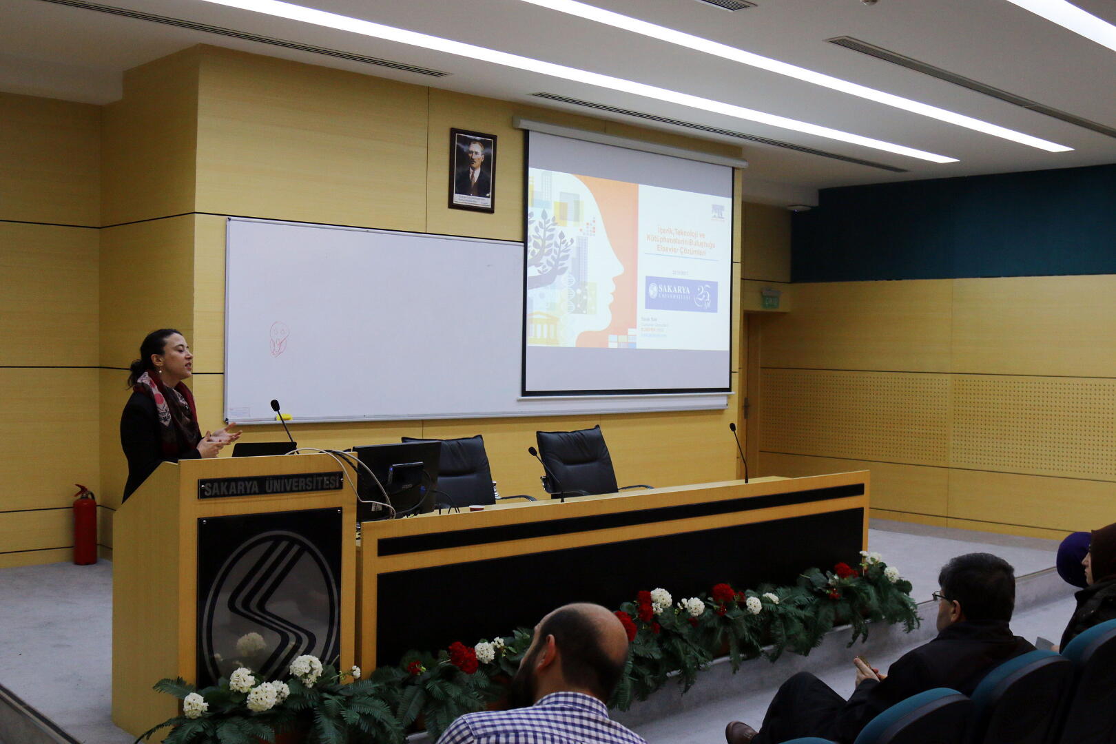 SAÜ Kültür ve Kongre Merkezinde düzenlenen etkinliğe ELSEVIER Türkiye - Katar - BAE Müşteri Danışmanı Saide Sak konuşmacı olarak katıldı. Akademisyen ve öğrencilerin katılım gösterdiği etkinlikte ELSEVIER’e bağlı ScienceDirect (makale veritabanı), Mendeley (akademik PDF ve referans programı) ve Scopus (araştırma literatürünün ve nitelikli web kaynaklarının en geniş özeti) kaynak bulma programlarının kullanımı anlatıldı.