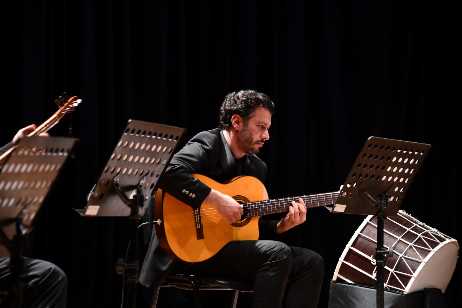 Sahnedeki vokal performanslara, alanında yetkin akademisyen ve müzisyenlerden oluşan saz ekibi eşlik etti. Ud’da Prof. Dr. Ferdi Koç, tanburda Öğr. Gör. Korkutalp Bilgin, klasik kemençede Öğr. Gör. Erhan Bayram, bağlamada Arş. Gör. Mehmet Der, kabak kemanede Fazıl Vural, gitarda Semih Enginler ve ritimde Ümit Kartal yer aldı. Zengin enstrümantal yapı, konserin müzikal derinliğini artırarak dinleyicilere çok katmanlı bir dinleti sundu.