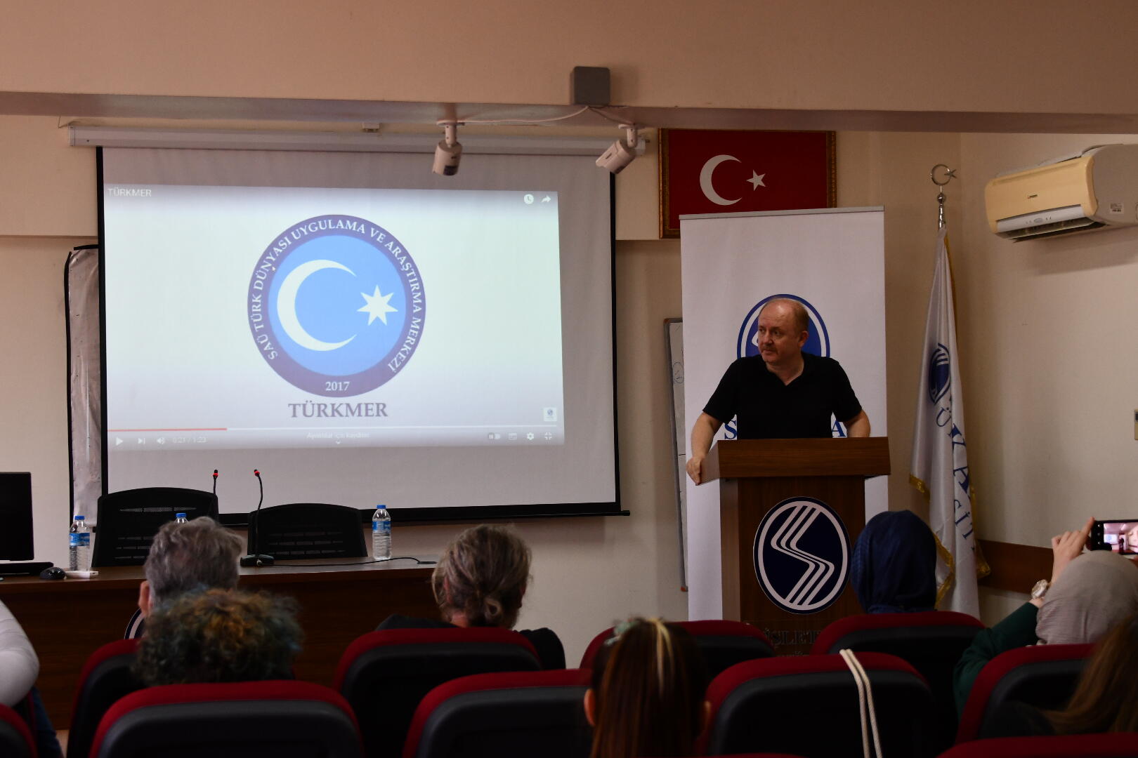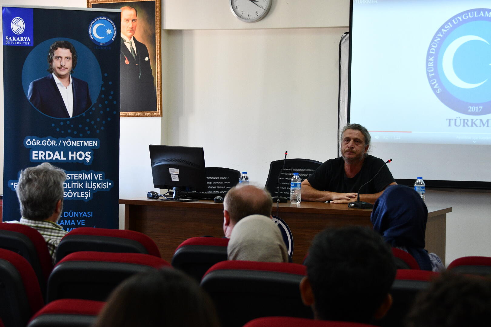 Sakarya Üniversitesi Türk Dünyası Uygulama ve Araştırma Merkezi Müdürü Prof. Dr. Köksal Şahin, “Merkezimizin aynı zamanda yönetim kurulunda olan ve beraber çalışmaktan mutluluk duyduğumuz üniversitemizin öğretim elemanlarından Erdal Hoş’u davet ettik. Kendileri, Türkiye’de spor dendiğinde özellikle futbol programlarında aklımıza gelen ve milli ruh, uluslararası politika, siyasal davranışların oluşumu gibi kitlesel hareketlerin, toplumsal hareketlerin oluşumunda sporun etkisi üzerine dünyanın her tarafında çalışmalar yaparak entelektüel gelişimi ve faaliyetlerini sürdürmektedir. Çektiği belgeselden haberimiz vardı. Erdal Hocamızın Türk dünyasına yönelik dünyanın çeşitli yerlerinde ya da bizim tarihimizde spor kulüpleri aracılığıyla siyasal toplumsallaşmaların nasıl gerçekleştiğine dair görüş ve fikirlerini dinlemek istedik. Bu etkinlikten faydalanacağımızı, bilgiler edineceğimizi ve keyifli bir bilimsel bilgi üretimi olacağını düşünüyorum. Kendisine ve katılım için gelen tüm öğrencilere ve meslektaşlarımıza, dostlarımıza teşekkür ediyorum.” dedi.