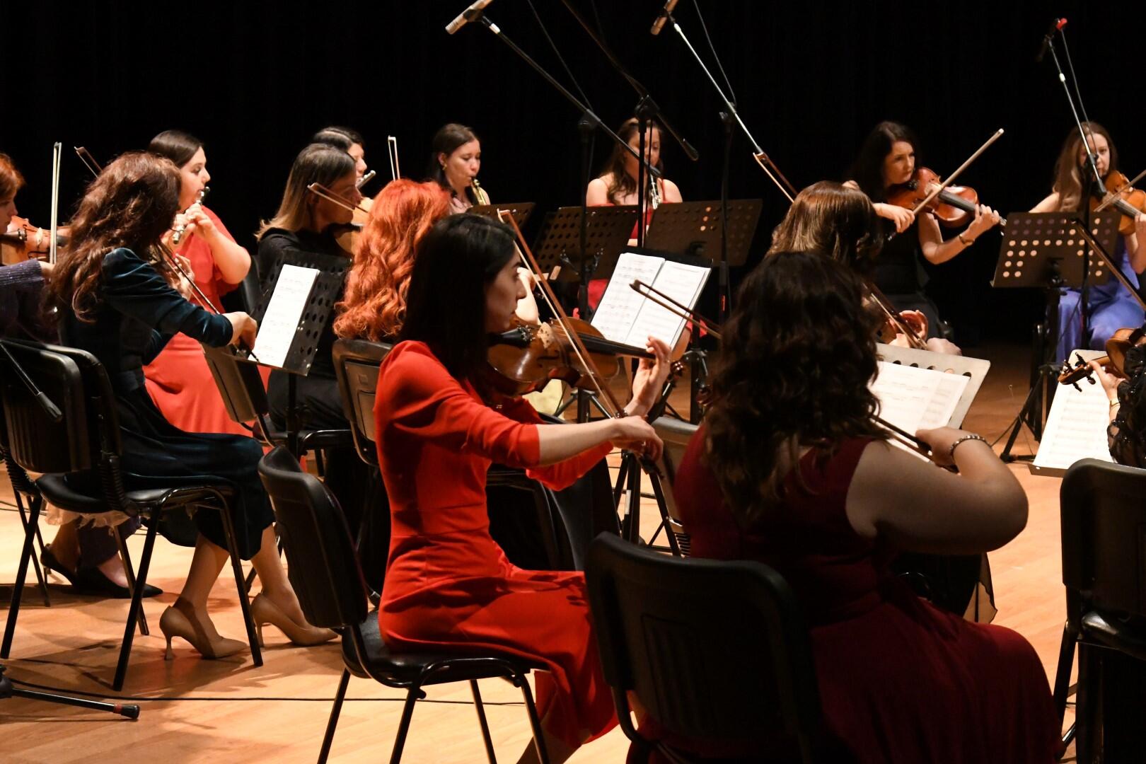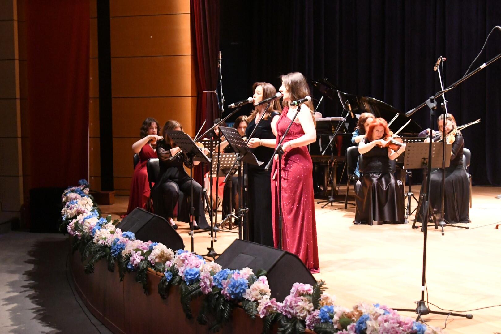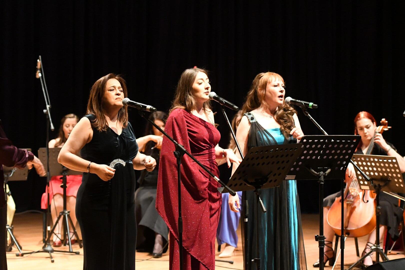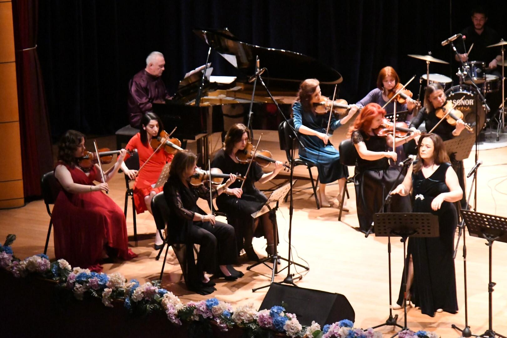 Prof. Dr. Nilgün Sazak, Öğr. Gör. Gül Yıkılmaz ve Buse Ustaoğlu’nun solist olarak yer aldığı konserde keman, viyola, viyolonsel, piyano, flüt, saksafon ve klarnet gibi enstrümanların incelikle işlenmiş melodileri dinleyicileri büyüledi.