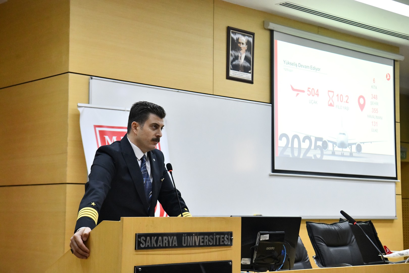 Sakarya Üniversitesinde gerçekleştirilen “Havacılık ve Pilotluk Mesleği” başlıklı kariyer etkinliğinde, pilotluk mesleğine ilgi duyan öğrenciler ve katılımcılar bir araya geldi. Türk Hava Yolları (THY) Kaptan Pilotu Muhammet Huz’un konuşmacı olarak yer aldığı programda, pilotluğa giden yolların yanı sıra mesleğin disiplin, süreklilik ve sorumluluk boyutu ele alındı.