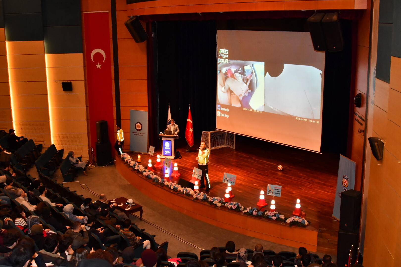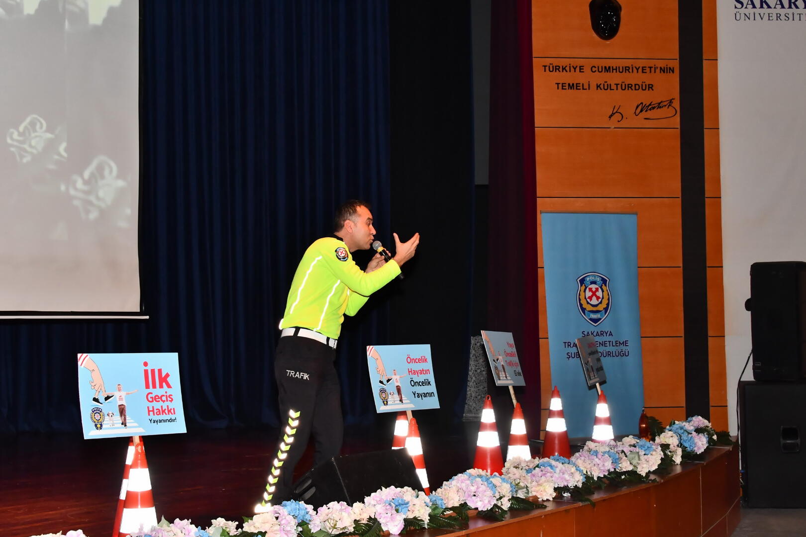 SAÜ Kültür ve Kongre Merkezinde düzenlenen etkinliğe Sakarya İl Emniyet Müdürlüğü Trafik Denetleme Eğitim Büro görevlisi Murat Ünal konuşmacı olarak katıldı.