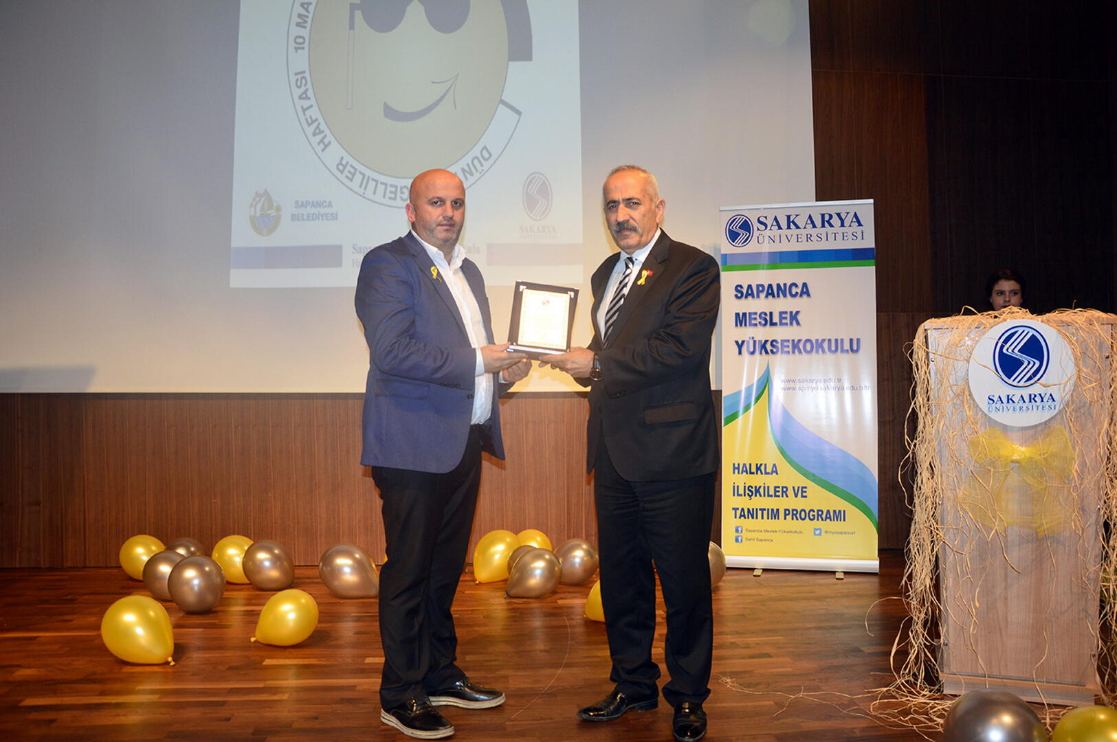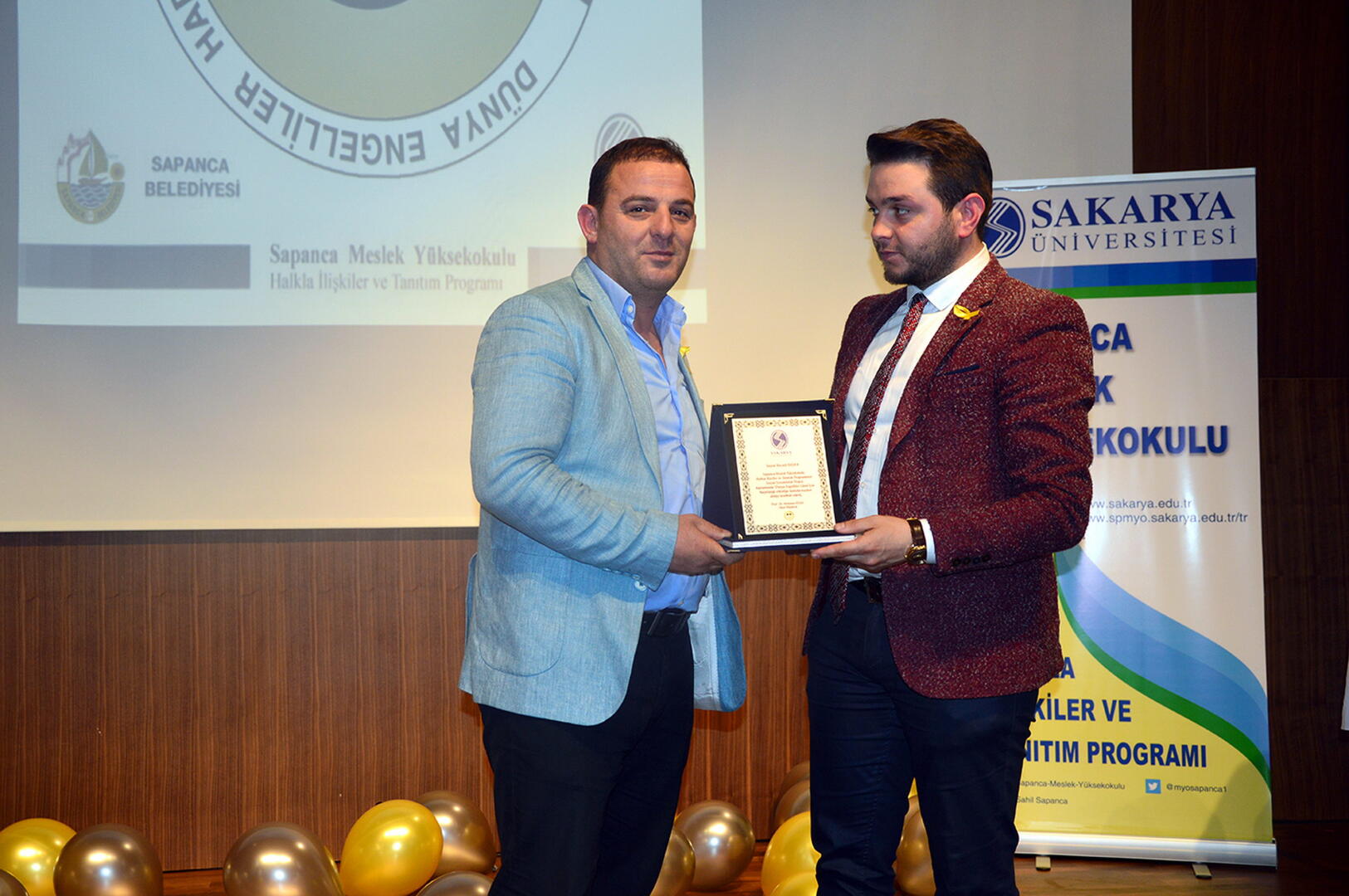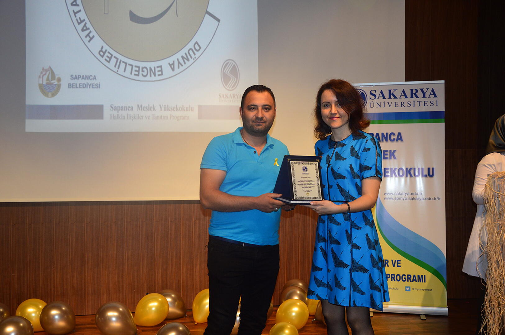 Son olarak konferansa katılan protokol üyeleri tarafından projeye destek veren kurum ve kişilere plaket takdimi yapıldı. Sapanca Belediyesi Başkan Yardımcısı İsa Sezer, Sapanca Anadolu Lisesi Müdürü Ahmet Pektaş, İlçe Müftüsü Faruk Çelik, Halkla İlişkiler Bölüm Başkanı Servet Sezgin, Sapanca Belediyesi Kültür ve Sosyal İşler Müdürü Şafak Başoğlu, Sapanca BEKO Bayii Necati Başar’a, Öğr. Gör. Serpil Çiğdem, Ela’m SPA sahibi Vahap Uzay ve İbrahim Bingül plaketlerini aldı.