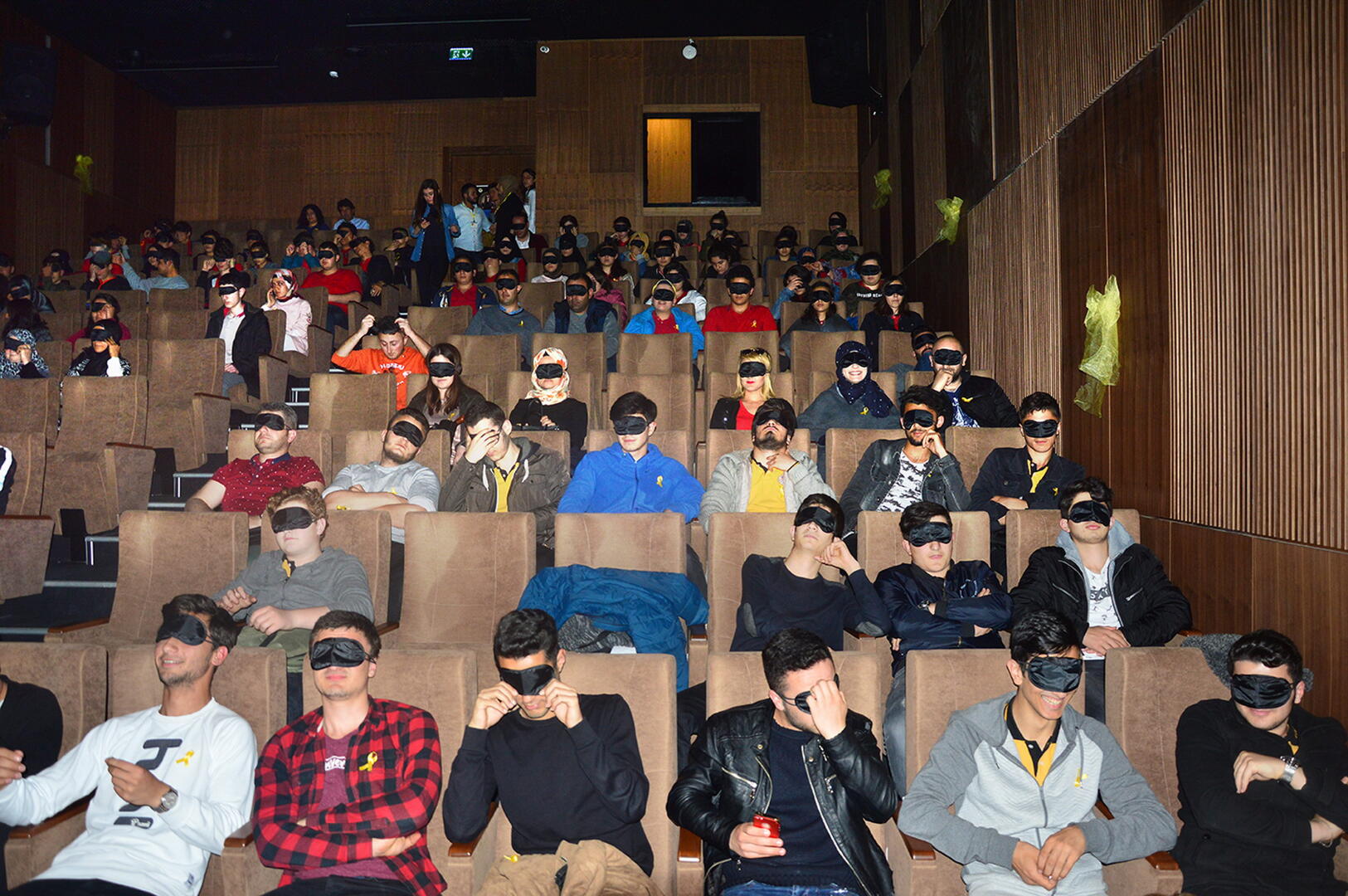 Kısa filmin ardından salonu dolduran Sapanca Anadolu Lisesi ve İmam Hatip Liseli öğrencilerinden koltuklarına bırakılan özel göz bandajlarını takmaları istendi. Betimlemeli film gösterisi ile görme engelliler için hazırladığı bir film gösterimi gerçekleştirildi. Daha sonra öğrenciler aynı filmi gözleri açık olarak tekrar izledi ve iki seyir arasında ne gibi farklılıklar olduğunu algılama imkânı buldu. Bu sayede görme engellilerin duygularına bir nebze de olsa ortak olabilmek amaçlandı.