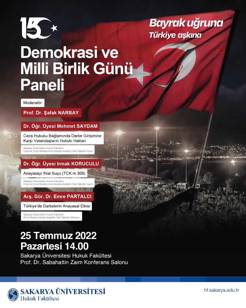 Sakarya Üniversitesi (SAÜ) Hukuk Fakültesi tarafından ‘Demokrasi ve Millî Birlik Günü Paneli’ düzenlendi.