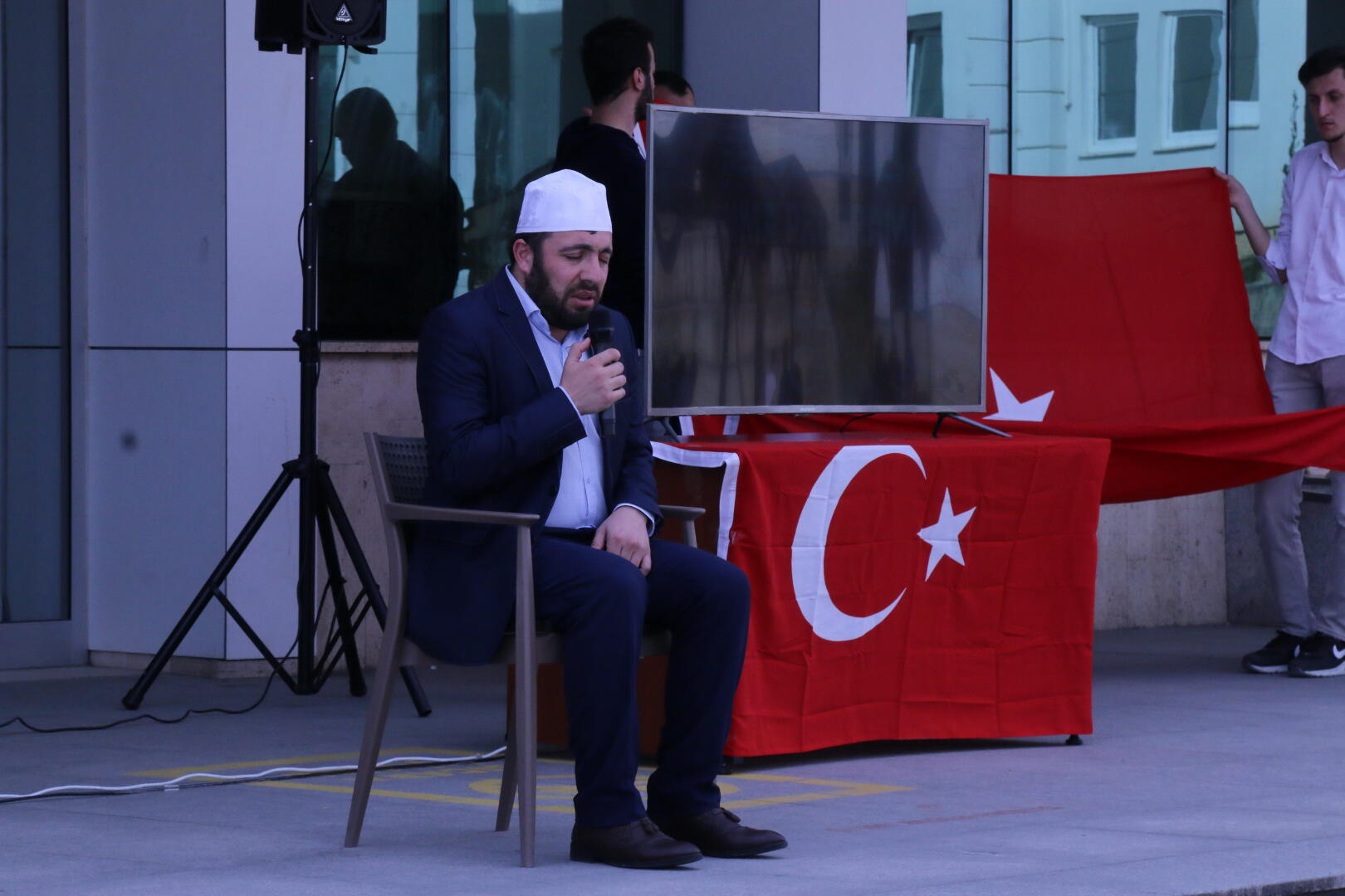 İlahiyat Fakültesi Konferans Salonunda gerçekleşen programda İlahiyat Fakültesi Dekanı Prof. Dr. Ahmet Bostancı ve Dr. Öğr Üyesi Abdullah Özcan birer konuşma yaptılar. Program, hatim okunması ve şehitlere dualar edilmesi ile devam etti.