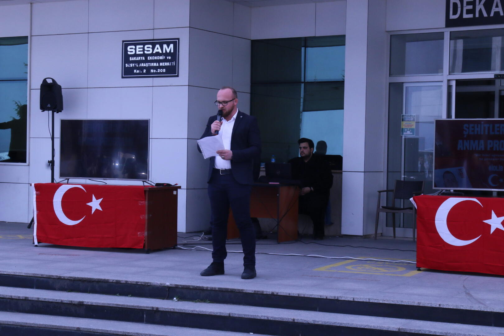 İlk program SAÜ Siyasal Bilgiler Fakültesinde düzenlendi. Siyaset Bilimi ve Kamu Yönetimi Öğrenci Topluluğu, İdlib şehitleri için anma töreni düzenledi. Fakülte önünde gerçekleşen törende öğrenciler dev Türk bayrağı etrafında toplandı ve şehitler için Kur-an-ı Kerim’den ayetler okundu. İdlib’deki hain saldırıda şehit olan askerlerin isimlerinin tek tek anıldığı törende öğrenciler, “şehitler ölmez, vatan bölünmez” sloganını attılar.