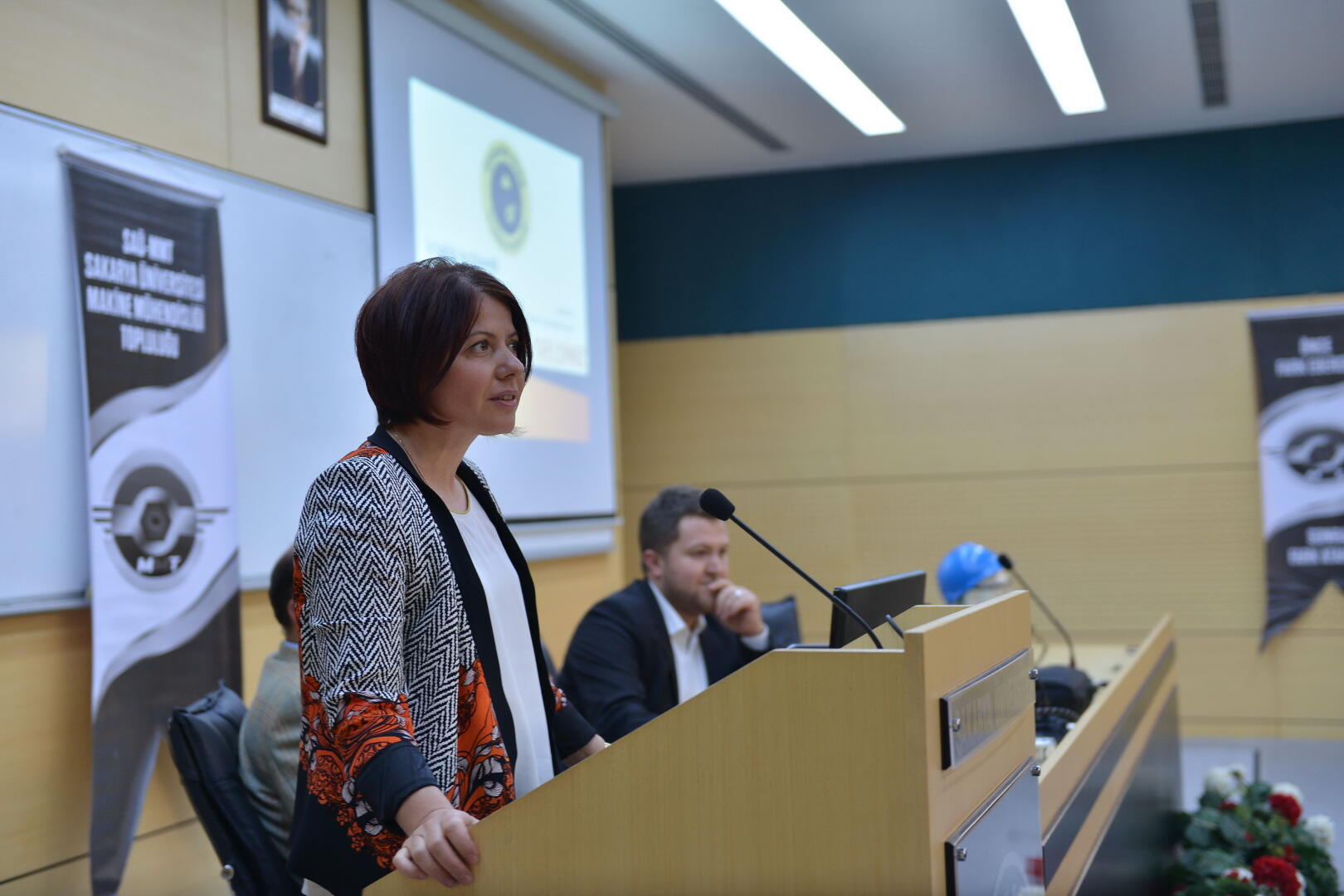 Açılış konuşmasının ardından söz alan İş Güvenliği Uzmanı Fatma Tuğ ‘işyeri’ teriminin önemine vurgu yaparak, işveren, işçi ve iş sağlığı ve güvenliği kavramlarının tanımını yaptı. İş güvenliğinden iş güvenliği uzmanları kadar mühendislerin de sorumlu olduğuna dikkat çeken Tuğ, “Makina mühendisleri de iş güvenliği konusunda en az iş güvenliği uzmanları kadar çalışmalı” dedi.