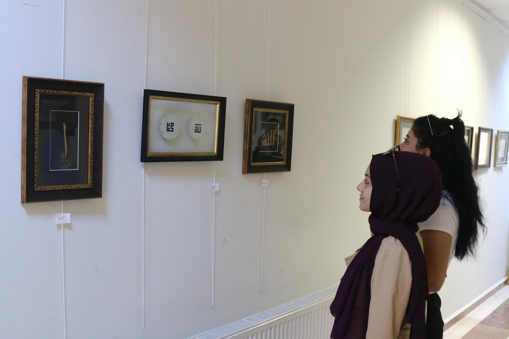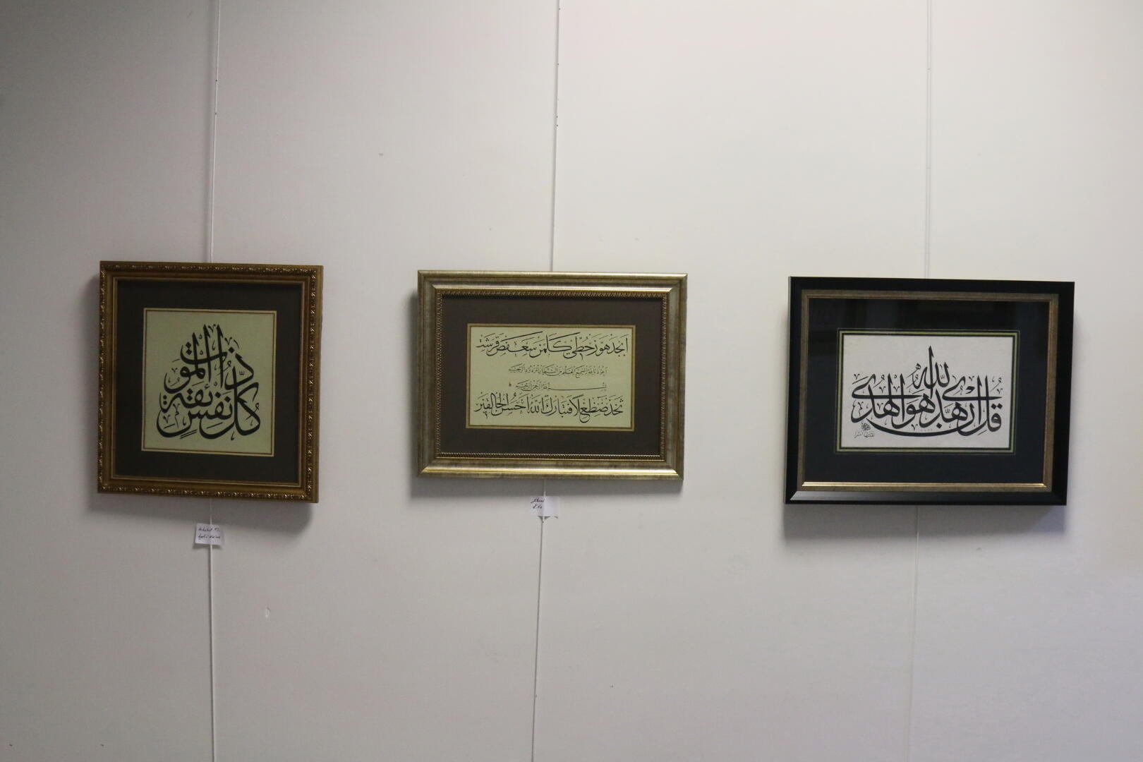 Toplamda 21 adet eserin bulunduğu ve ağırlıklı olarak celi sülüs yazılarının mevcut olduğu sergide sülüs, nesih ve kufi yazı türlerinde çalışmalar da yer almaktadır.