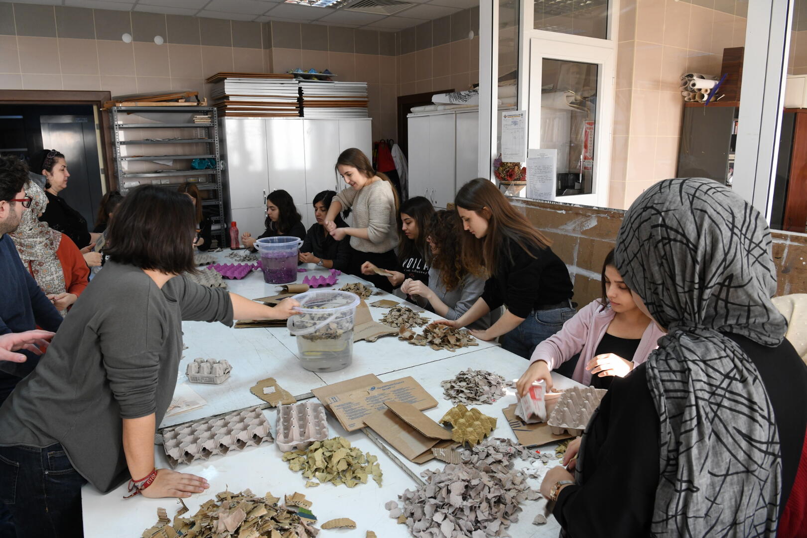 Arş. Gör. Kevser Akçıl aracılığıyla düzenlenen atölye çalışmasında İspanyol sanatçılar Bosh ve Cascales, iki gün boyunca kağıt ve kartonları geri dönüştürerek yeniden kullanılabilir her yüksek kalite kağıt üretimi yaptılar. Kağıdın tekrar kullanımı sağlanarak, geri dönüşüme dikkat çekilen etkinlikte öğrenciler ürettikleri kağıtlar ile eserlerini tamamladı.