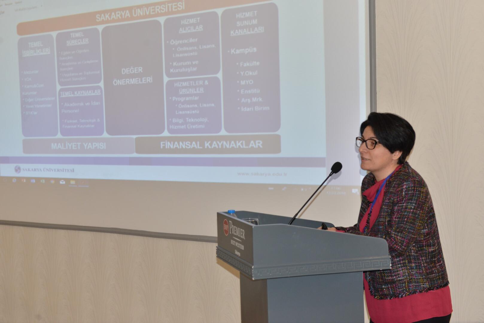 Sunumunda Sakarya Üniversitesi’nin kalite süreçleri hakkında bilgiler veren Sakarya Üniversitesi Akademik Değerlendirme ve Kalite Geliştirme Kurulu (SAÜDEK) Koordinatörü Yrd. Doç. Dr. Tuba Canvar Kahveci, SAÜ’nün kalite yolculuğunda nasıl bir yol izlediğini katılımcılar ile paylaştı. SAÜ’nün geliştirdiği sistem ile her zaman ve her anda bütün kalite değerlendirme süreçlerine hazır olduğunu ifade eden Yrd. Doç. Dr. Kahveci, SAÜ’nün hedefleri ve stratejik planları konusunda bilgiler verdi. Yrd. Doç. Dr. Kahveci, SAÜ’nün bütün programlarının akreditasyon süreçlerine uygun hale geldiğini belirtti.