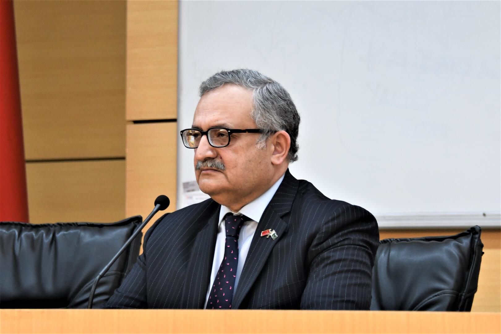 Programda konuşan Pakistan Büyükelçisi Muhammad Syrus Sajjad Qazi, Sakarya Üniversitesine ilk defa geldiğini ve çok memnun olduğunu dile getirdi.