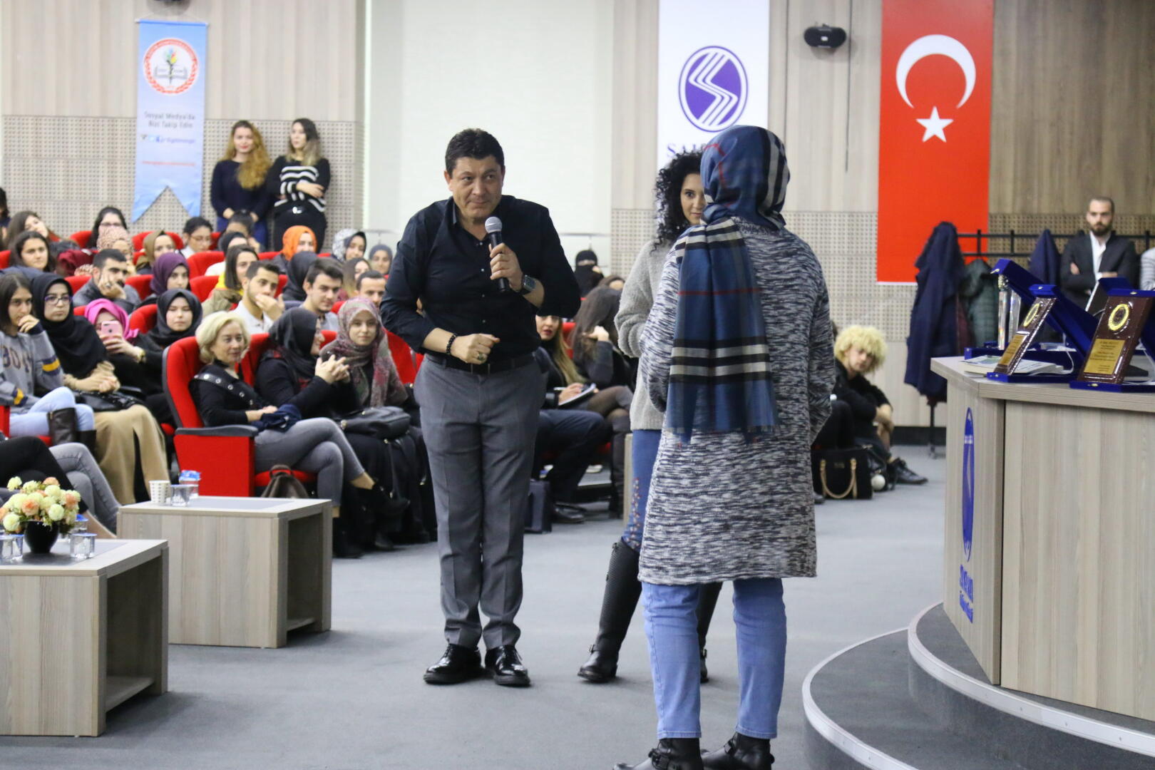 NLP Uzmanı Harun Gökçekaya ise seminerde motivasyon sağlama, hedef belirleme yöntem ve teknikleri, CV oluşturma, duygu yönetimi konularında eğitim verdi. Gökçekaya, “Kendimizi keşfetmediğimiz zaman yapamayacağımızı düşünüyoruz. Hepimiz çok özeliz, çok farklıyız. Biz o kadar çok şey ifade ediyoruz ki olmazlarımız, hayalleriniz, neleri başarabileceğiniz noktasında düşündüğünüz zaman gerçekten çok şeyi aşabilecek güç ve enerji yalnızda sizde” ifadelerini kullandı. Öğrencilere de bazı tavsiyelerde bulunan Gökçekaya, “Bölümünüz ne olursa olsun ne öğrendiğinizden çok öğrendiğiniz bilgileri aktarabilmeniz önemli. Bir alan seçip kendinizi o alanda geliştirin. Bilgilerinizden emin olun ve kendinize inanın. Çok iyi işler, projeler doğru ifade edilemediği için ilerleyemiyorlar. Kendinizi doğru ifade ettiğiniz an yaptıklarınız anlam kazanıyor” şeklinde konuştu.
