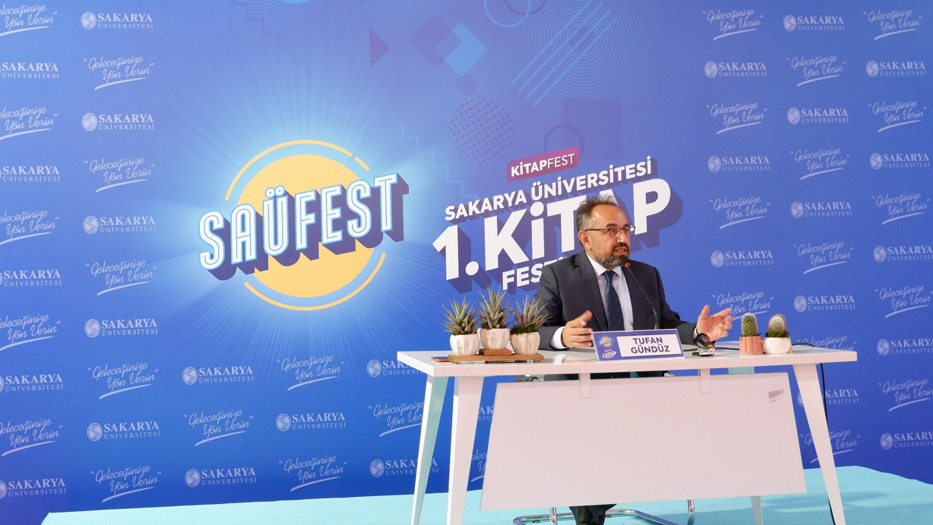 Sakarya Üniversitesi tarafından düzenlenen SAÜFEST bünyesinde yapılan KitapFest’e Prof. Dr. Tufan Gündüz konuk oldu. Tarih Profesörü Tufan Gündüz, “Kızıl Elma” üzerine okurlarıyla söyleşi gerçekleştirdi.