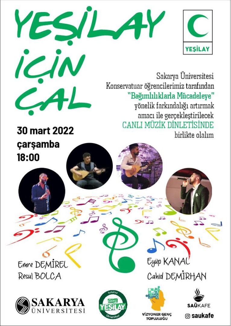 “Yeşilay İçin Çal” konseri 30 Mart saat 18.00'de SAÜ Kafe’de gerçekleştirilecek.