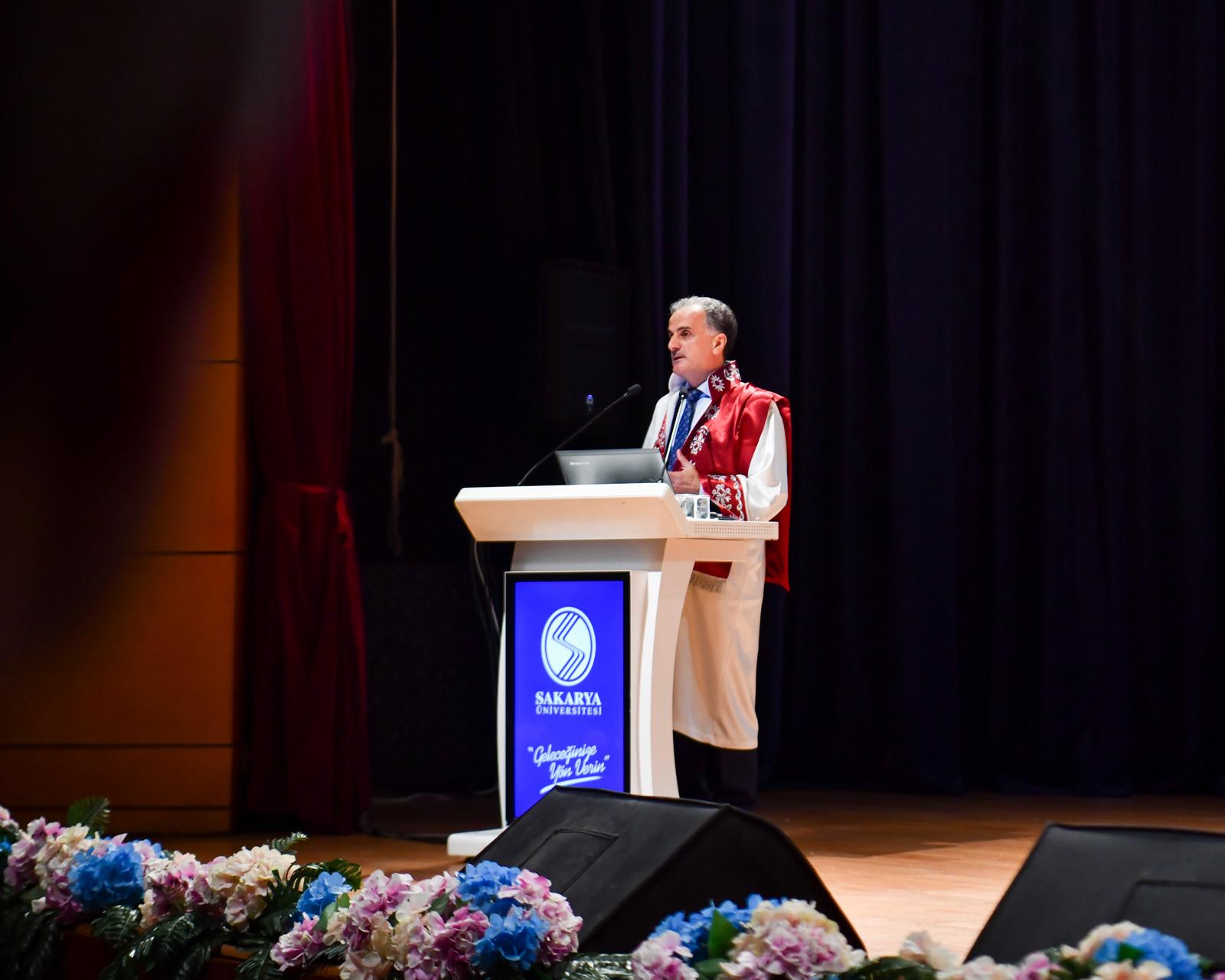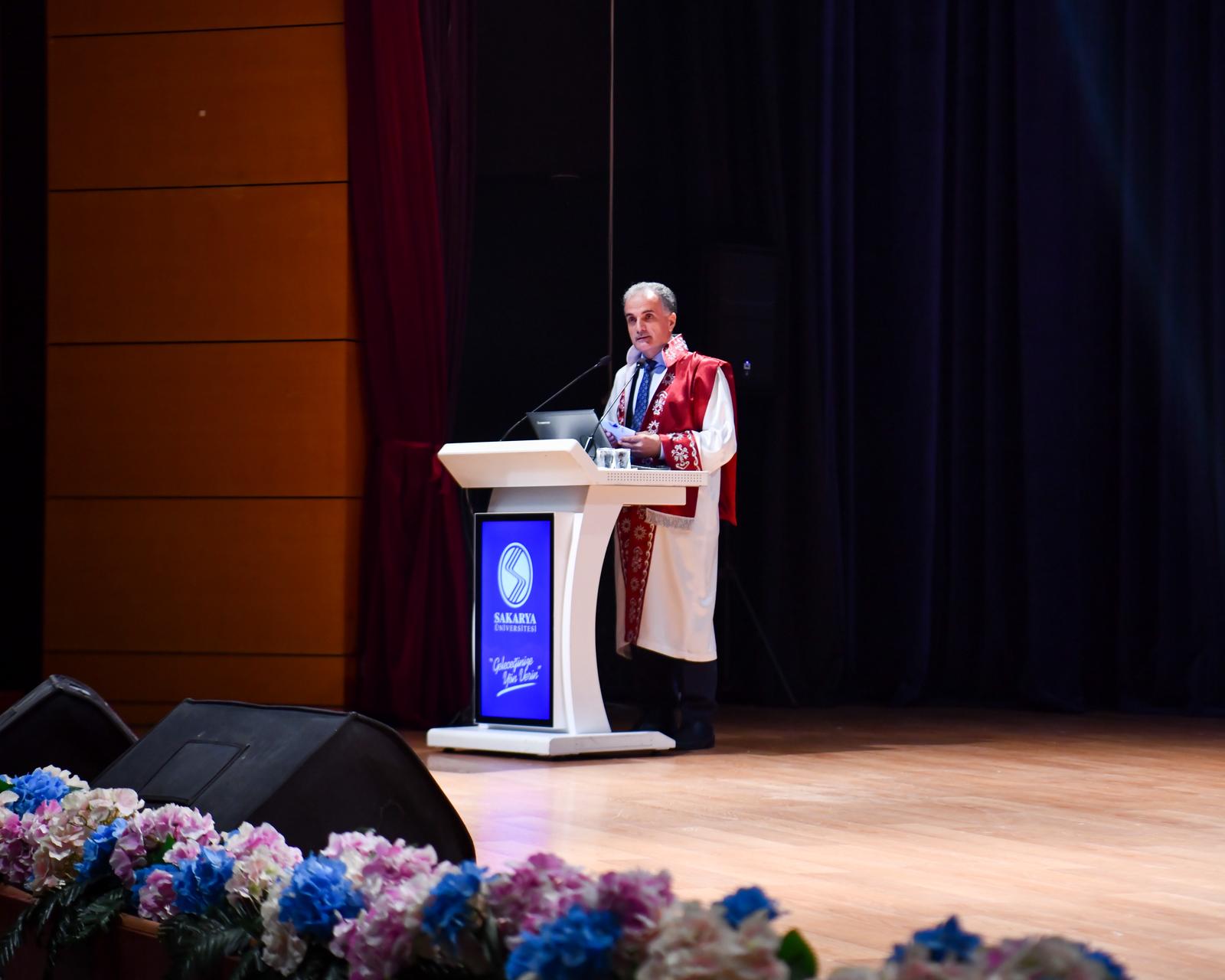 Sakarya Üniversitesi Rektörü Prof. Dr. Hamza Al, mezuniyet töreninin açılış konuşmasında Sakarya Üniversitesinin köklü geçmişine ve gelecek hedeflerine değinerek “Sakarya Üniversitesinin mezunları arasında iş sahibi olan, hatta kendi işini kuran pek çok kişi var. Sakarya Üniversitesi artık hepimizin kimliğinin bir parçası. Sizler de bu ailenin birer ferdisiniz. Mezuniyet kelimesi bir bitiş değil, yetki anlamı taşır; yani artık yeni bir hayata başlamak için yetkilisiniz” ifadelerini kullandı.