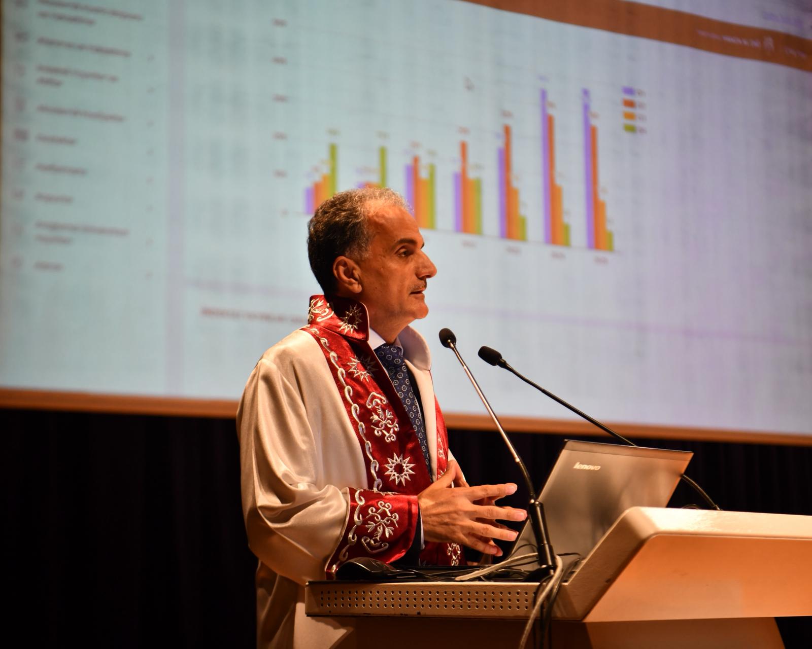 Enstitüler Koordinasyon Kurulu Başkanı ve Fen Bilimleri Enstitüsü Müdürü Prof. Dr. Hüseyin Özkan Toplan, Sakarya Üniversitesinde altı enstitüde toplam 9 bine yakın öğrencinin eğitim gördüğünü ve bugüne kadar 23 binden fazla yüksek lisans, 3 binden fazla doktora mezunu verildiğini ifade etti. Enstitülerin yalnızca akademik yaşamı besleyen kurumlar değil, kamu ve özel sektöre nitelikli insan gücü kazandıran yapılar olduğuna dikkati çeken Toplan, danışman akademisyenlere de teşekkür ederek üniversitelerin gerçek gücünün öğrencilerine rehberlik eden akademisyenlerinin emeği olduğunu anlattı.