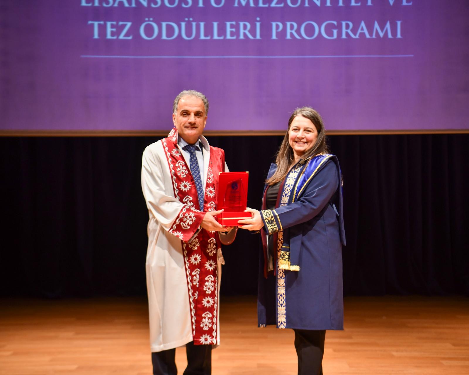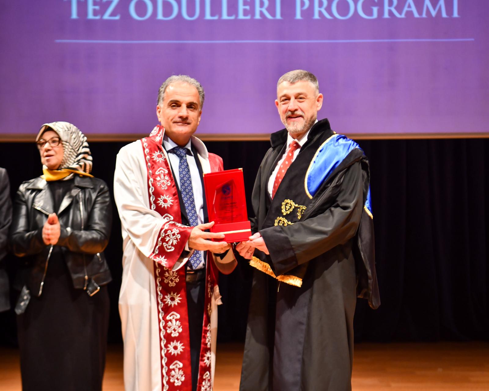 Törenin açılış konuşmasını yapan Sağlık Bilimleri Enstitüsü Müdür Vekili Prof. Dr. Elvan Şahin, lisansüstü eğitimin yalnızca akademik bir süreç değil, bilime ve insanlığa hizmet etme sorumluluğunu da beraberinde getirdiğini ifade etti. Prof. Dr. Şahin, “Bir tez yalnızca bir belge değil, düşüncenin ürüne dönüştüğü bir yolculuktur” diyerek tez ödülü almaya hak kazanan öğrencileri ve danışmanlarını kutladı. Törenin hazırlık sürecine katkı sunan tüm birimlere teşekkür eden Şahin, bilimin rehberliğinde ilerleyen mezunların gelecekte yeni ufuklar açacağına inandığını belirtti.