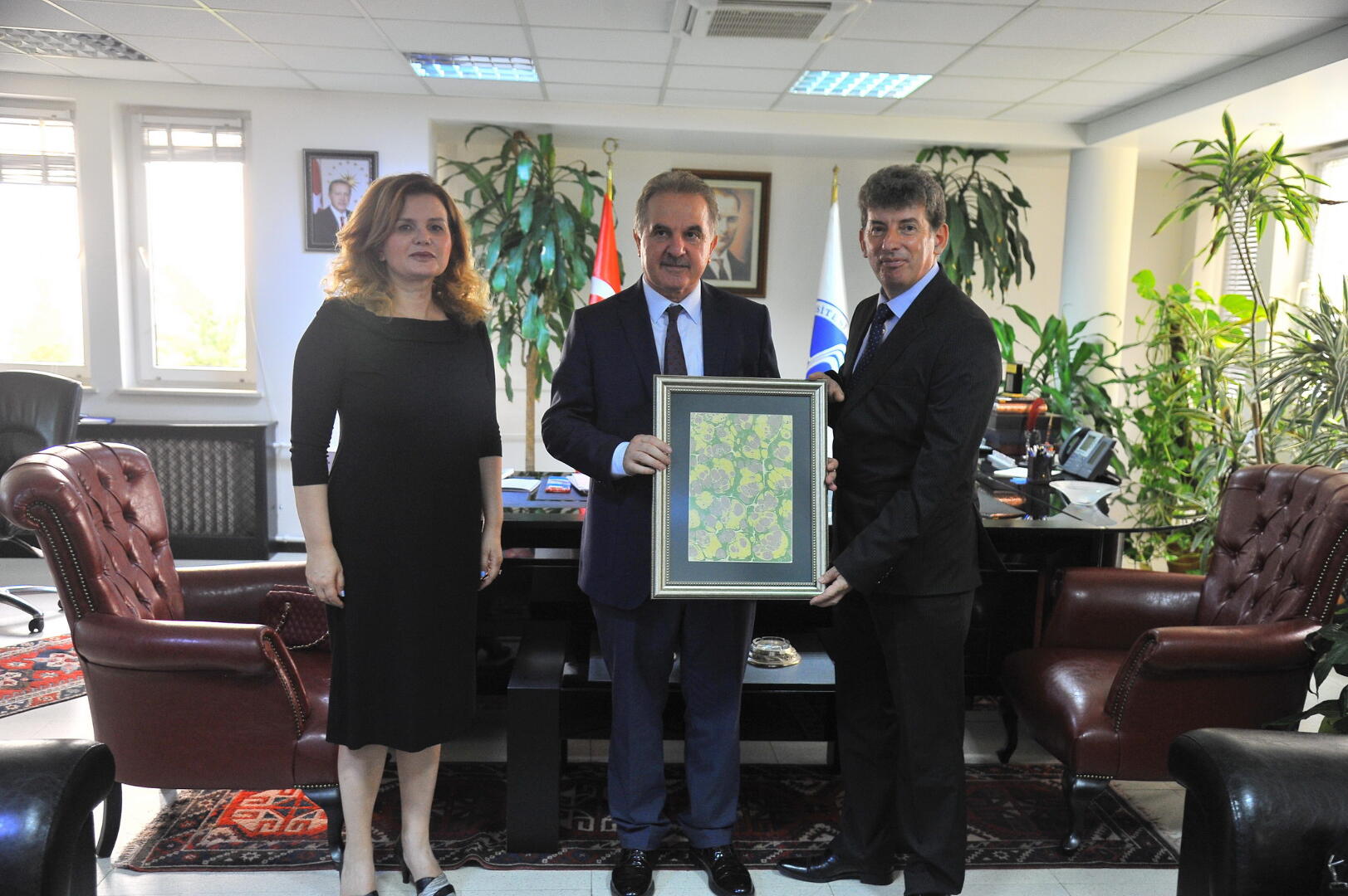 Makedonya Cumhuriyeti Yükseköğretim Kurulu Başkanı beraberindeki heyetle Sakarya Üniversitesi Rektörü Prof. Dr. Muzaffer Elmas’ı makamında ziyaret etti.
