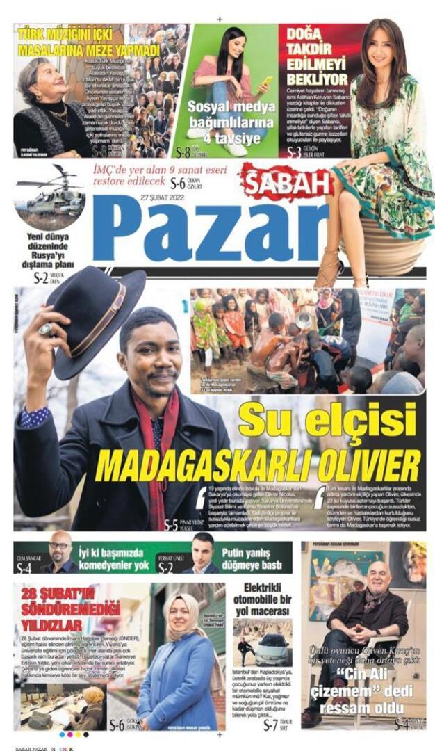 Sakarya Üniversitesi Siyaset Bilimi ve Kamu Yönetimi mezunu Madagaskarlı Olivier Nicolas, giriştiği insani yardım projesi ile Sabah Gazetesi’nin Pazar ekinin manşet konusu oldu.