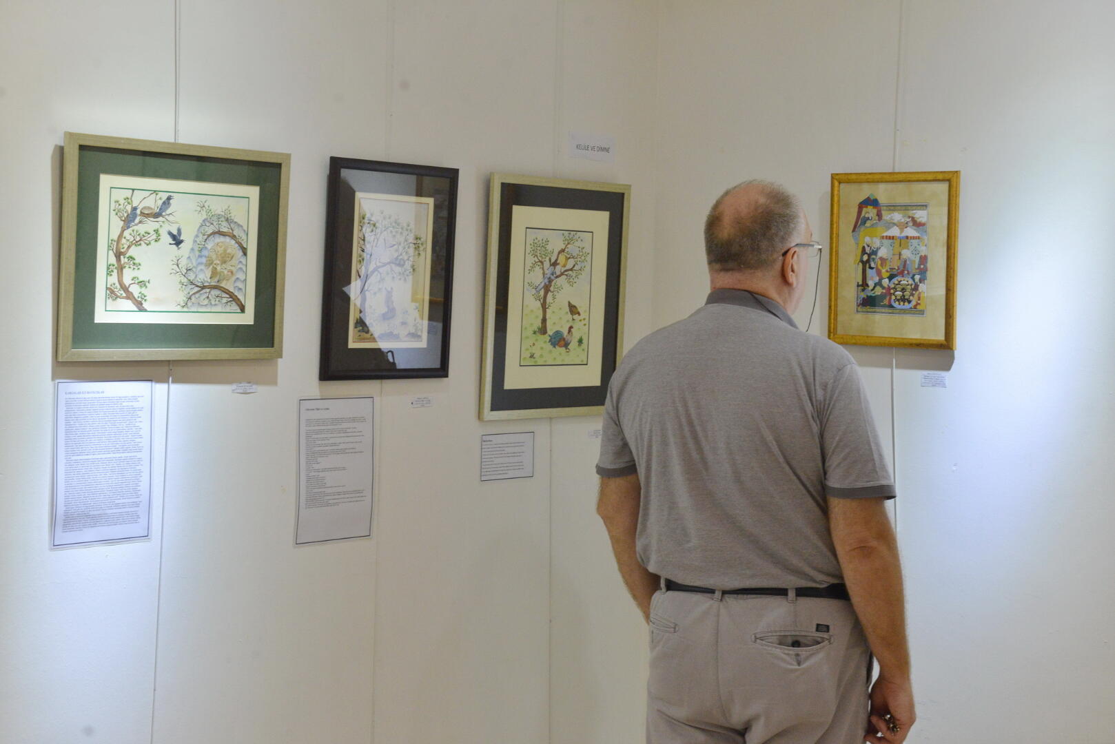 Geleneksel Türk Sanatları Bölümünden Öğr. Gör. Ayşen Karakoç Civili öncülüğünde hazırlanan sergide 52 adet özgün tasarım ve 5 adet reprodüksiyon çalışması yer alıyor. Sergiye ilişkin bilgiler veren Öğr. Gör. Ayşen Karakoç Civili, “Türk minyatür sanatında sıkça işlenen Kelile ve Dimne, Siyer-i Nebi, Nasrettin hoca fıkraları, halk türküleri ile Gül ve Bülbül konuları ele alındı. Sergide bulunan eserler, tarama, tonlama, sulu boya gibi muhtelif teknikler kullanılarak öğrenciler tarafından hazırlandı. Ayrıca zeminde murakka üzerine yapıştırılan aharlı kâğıtlar ve renkli paspartu kâğıtlar; boyama olarak da sıvama altın ve guaj kullanıldı” diye konuştu.
