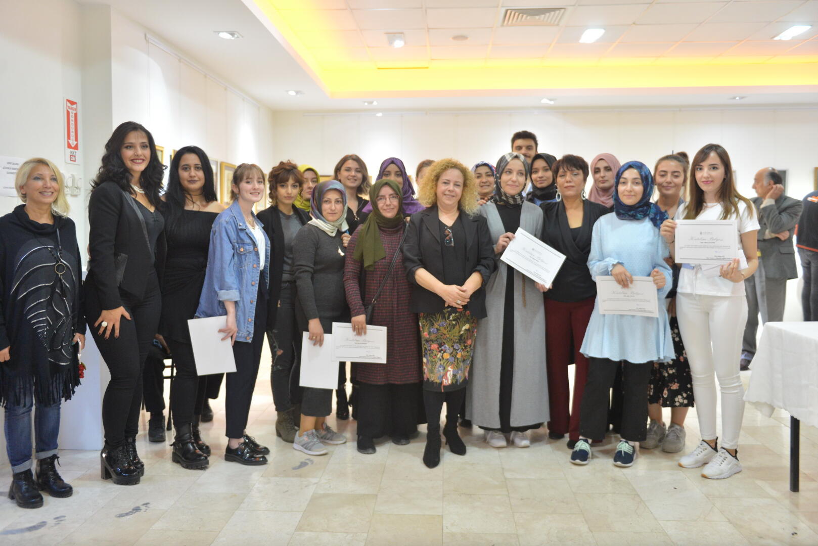 Sanat, Tasarım ve Mimarlık Fakültesi Dekanı Prof. Kadriye Didem Atiş ve Öğr. Gör. Ayşen Karakoç Civili, sergide emeği geçen öğrencilere teşekkür belgelerini takdim etti.