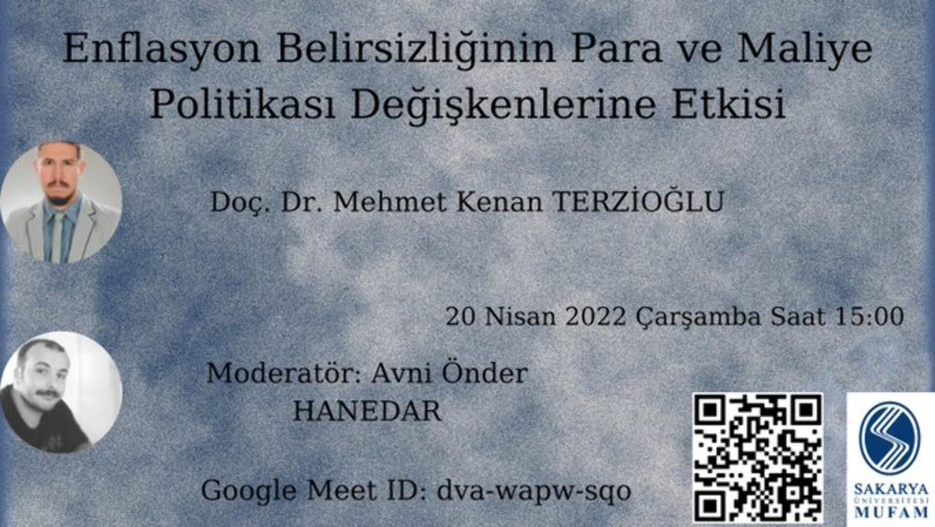 Sakarya Üniversitesi Muhasebe ve Finans Uygulama ve Araştırma Merkezinin (MUFAM) düzenlediği “Enflasyon Belirsizliğinin Para ve Maliye Politikası Değişkenlerine Etkisi” etkinliğine Doç. Dr. Mehmet Kenan Terzioğlu konuşmacı olarak katıldı.