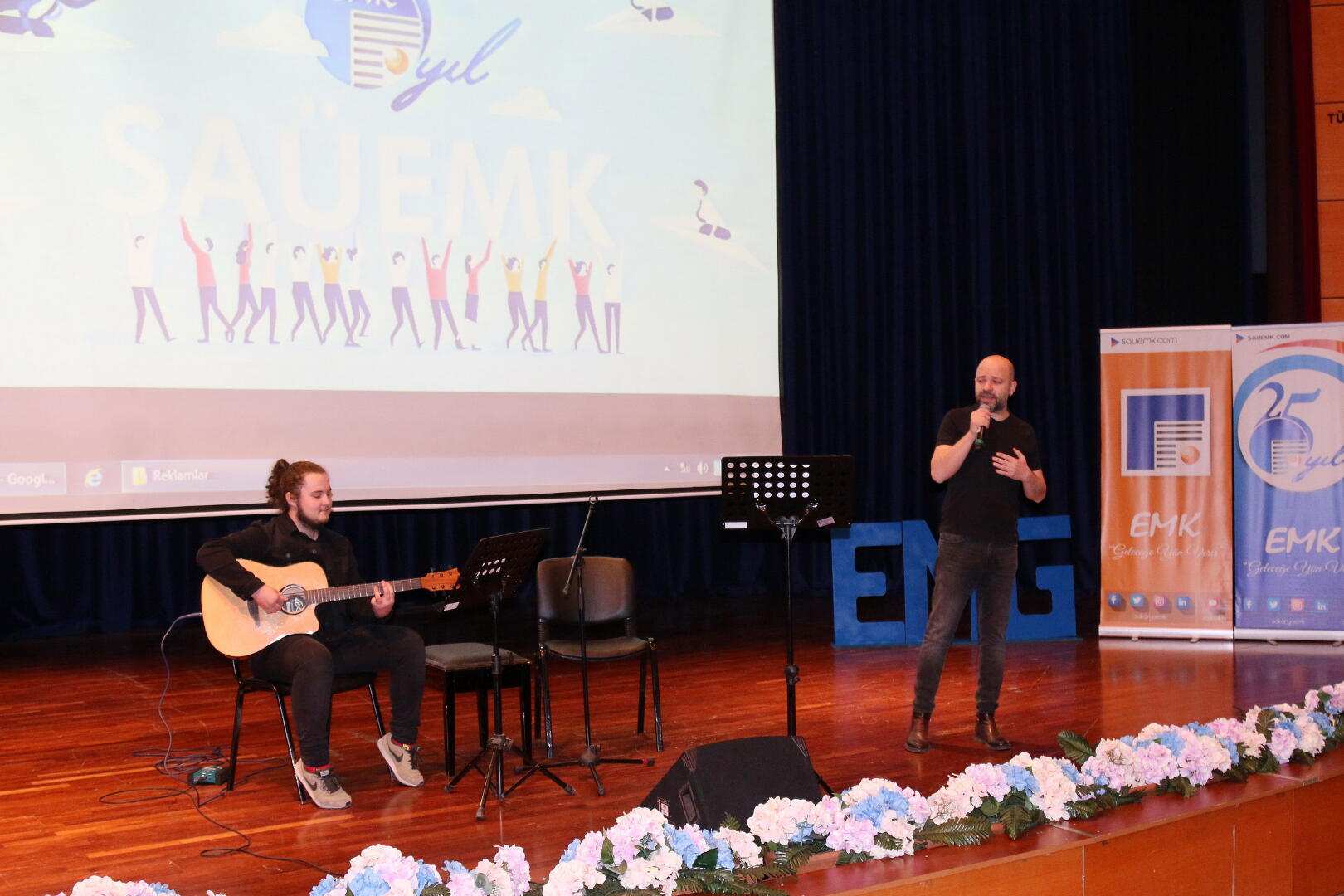 SAÜ Kültür ve Kongre Merkezinde gerçekleşen etkinliğe Yüksek Sadakat’ın eski solisti müzisyen Cemil Demirbakan konuşmacı olarak katıldı. Öğrencilerin yoğun ilgi gösterdiği etkinlikte Demirbakan, sevilen şarkılarını da seslendirdi.