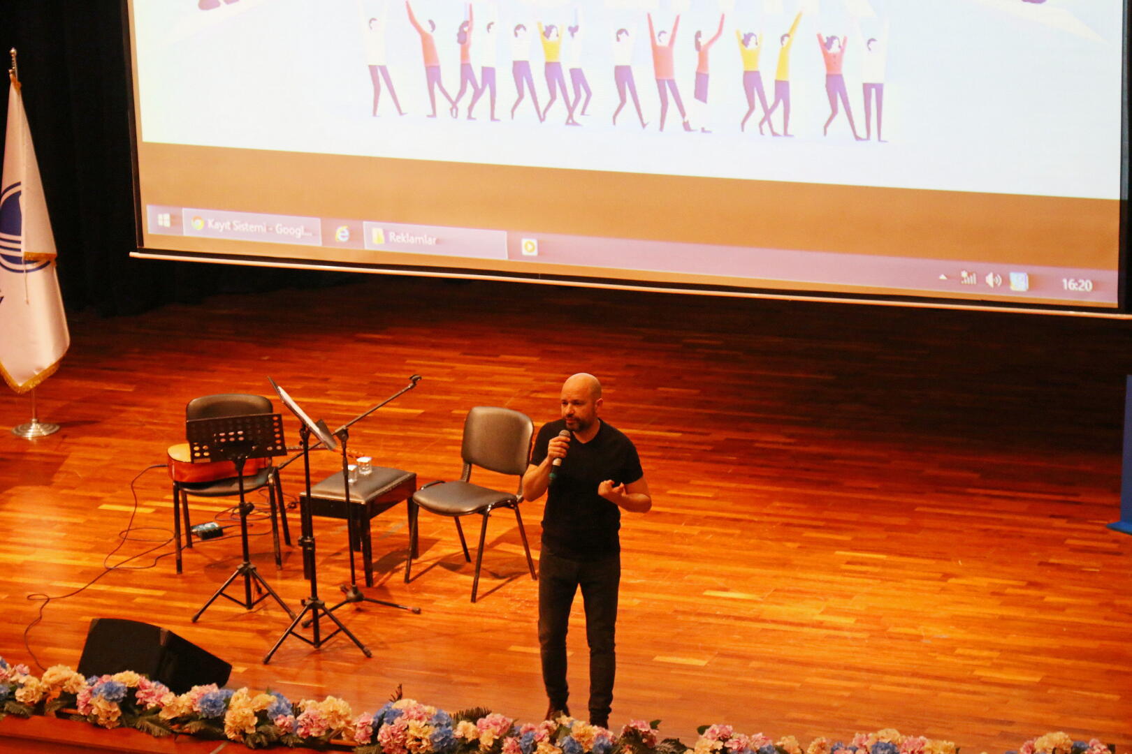 Demirbakan, konferansın devamında öğrencilere sevilen şarkılarını seslendirdi.