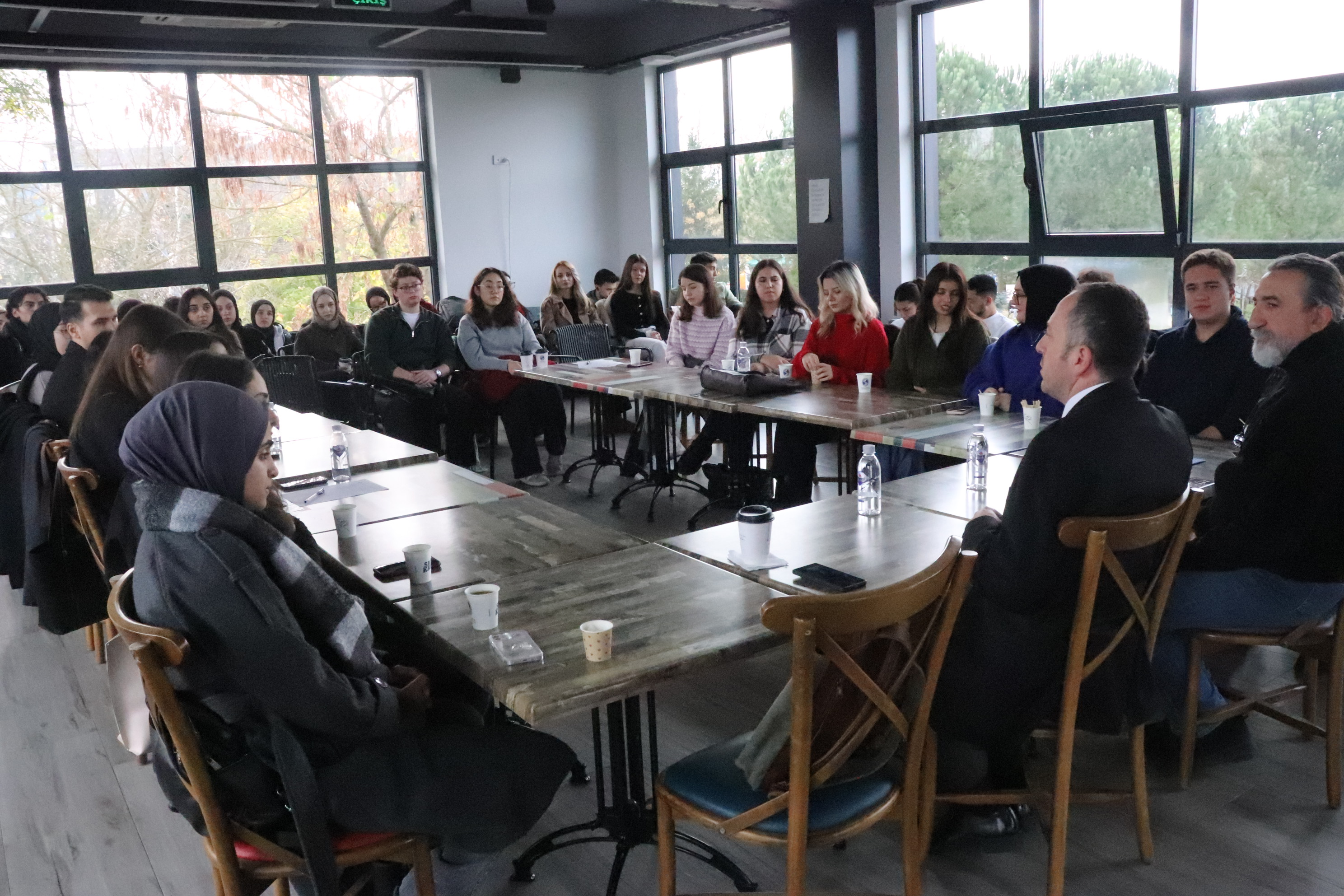 Doç. Dr. Sezercan Bektaş, Türkiye’de hukuk fakültelerinin artışına bağlı olarak nitelik ve istihdam sorunlarının ortaya çıktığını, bu durumun uzun vadede mesleki kaliteyi olumsuz etkileyebileceğini belirtti. Hukukun toplumla ilişkisine, bireylerin hak bilincine ve hukuk eğitiminin niteliğine dair değerlendirmeler yaparak konuşmasını tamamlayan Bektaş’a, programın sonunda katılımlarından dolayı teşekkür belgesi takdim edildi.