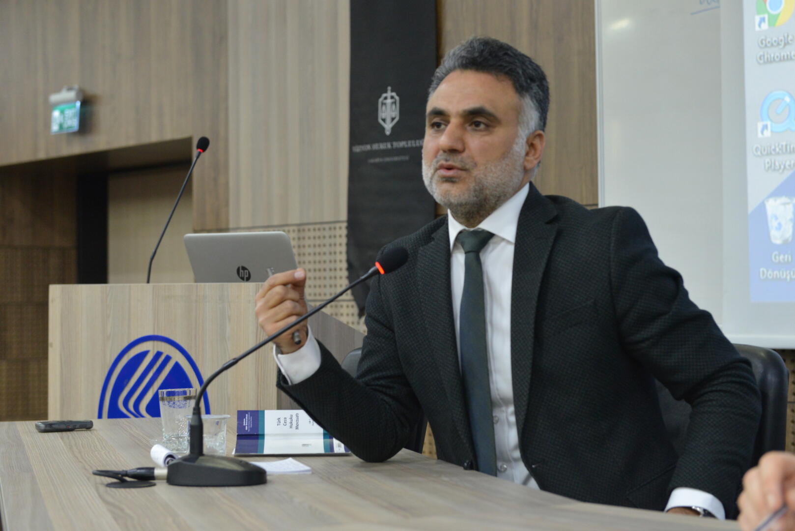 Sözlerine sosyal medya ve hukuk ilişkisini anlatarak başlayan Prof. Dr. Mahmut Koca, “İnternet ortamında yaşanan her türlü gelişme, hukukla ilişkili hale geliyor. Bu ortamının sağladığı faydalar hukuka uygun şekilde kullanıldığı gibi hukuka aykırı bir şekilde de kullanılabiliyor. İnternetin kolaylıkları olduğu kadar, bazı riskleri de var. Hukuk bu risklerin ortaya çıkmasını önlemek zorunda. İnternet kullanıcıları, yer aldıkları platformlar sayesinde artık birer medya sahibi oldular. Sosyal medya sayesinde üretilen içerikler dünyanın bir diğer ucundaki insanlara ulaşabiliyor. Ayrıca insanlar hoşlarına gitmeyen içeriklere anında tepki verebiliyor. Lakin bu kolaylıklar nedeniyle suç oranlarında artış meydana geldi. İnternet ortamında yaşanan ihlaller, “Bilişim Kanunu” çerçevesinde değerlendirilmeli ve gerekli işlemlerin yapılması sağlanmalıdır” ifadelerini kullandı.
