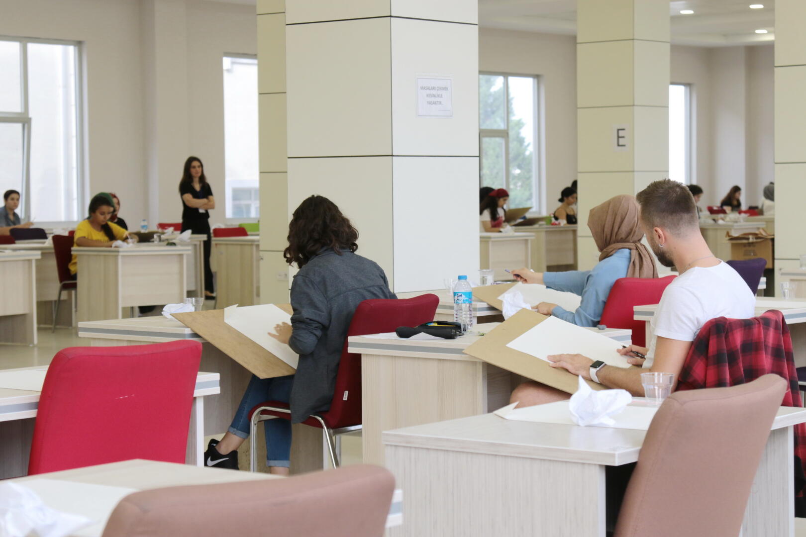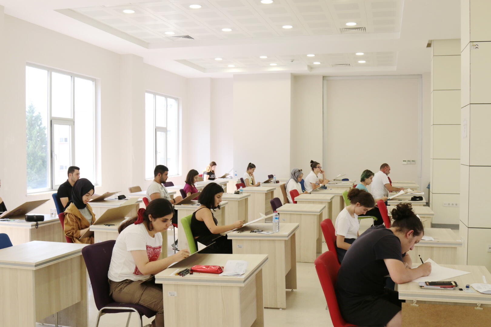 Resim, Seramik ve Geleneksel Türk El Sanatları bölümlerinde öğrenim görmek isteyen adayların yoğun ilgi gösterdiği sınav, 4 Eylül Salı günü iki oturumda yapıldı.