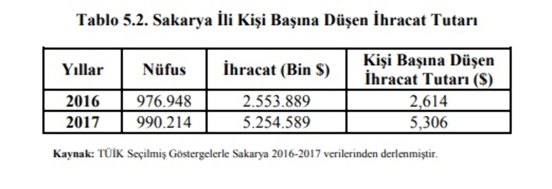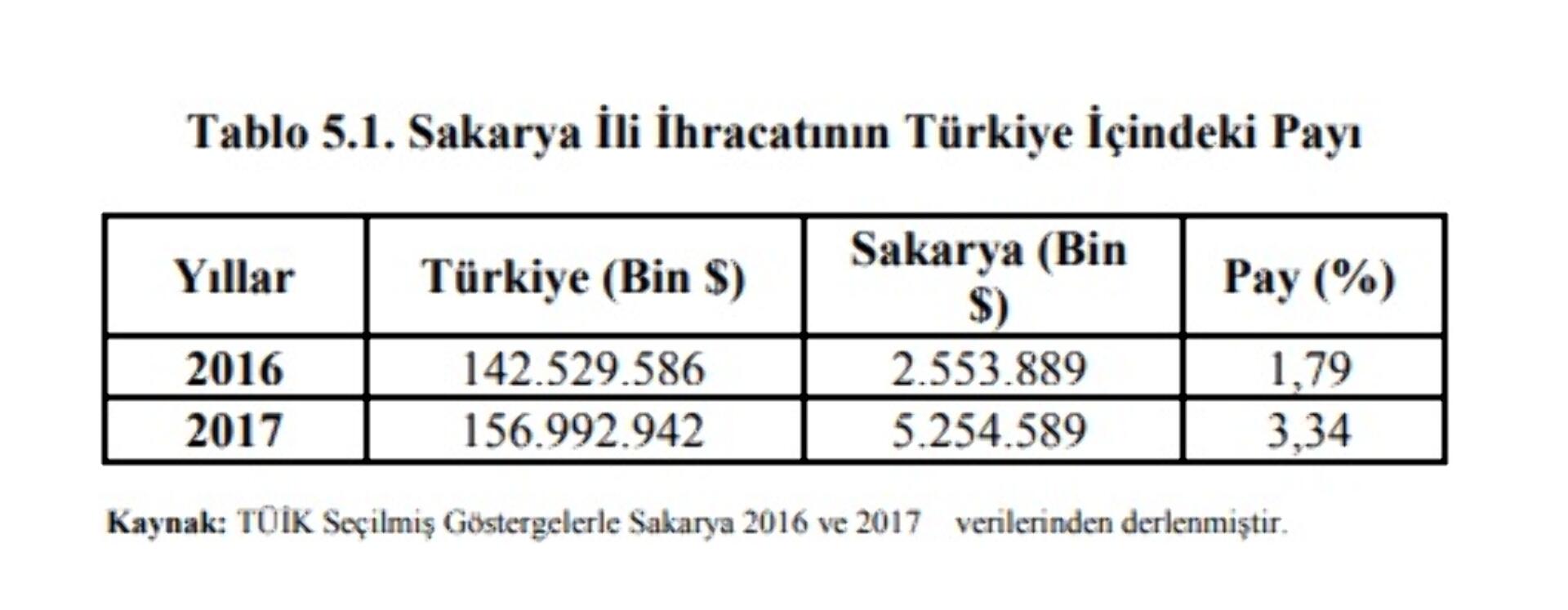 SESAM raporuna göre 2016’da Sakarya, Türkiye’nin toplam ihracatının yüzde 1,79’unu, 2017’de ise yüzde 3,34’ünü gerçekleştirdi. 2017 ihracatı bir önceki yıla göre yüzde 10,14 artış gösteren Sakarya, ihracat alanındaki bu gelişmeler sayesinde sosyo-ekonomik gelişmişlik seviyesini yükselterek Türkiye’de ihracat sıralamasında 7’nci il oldu.