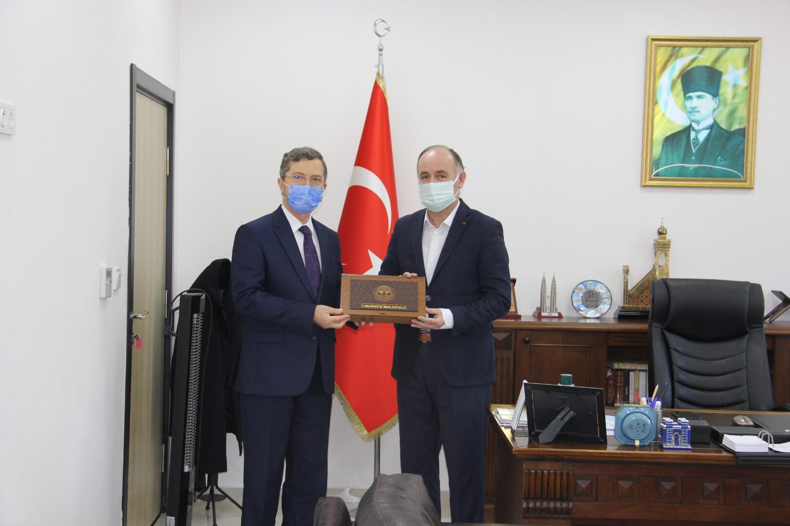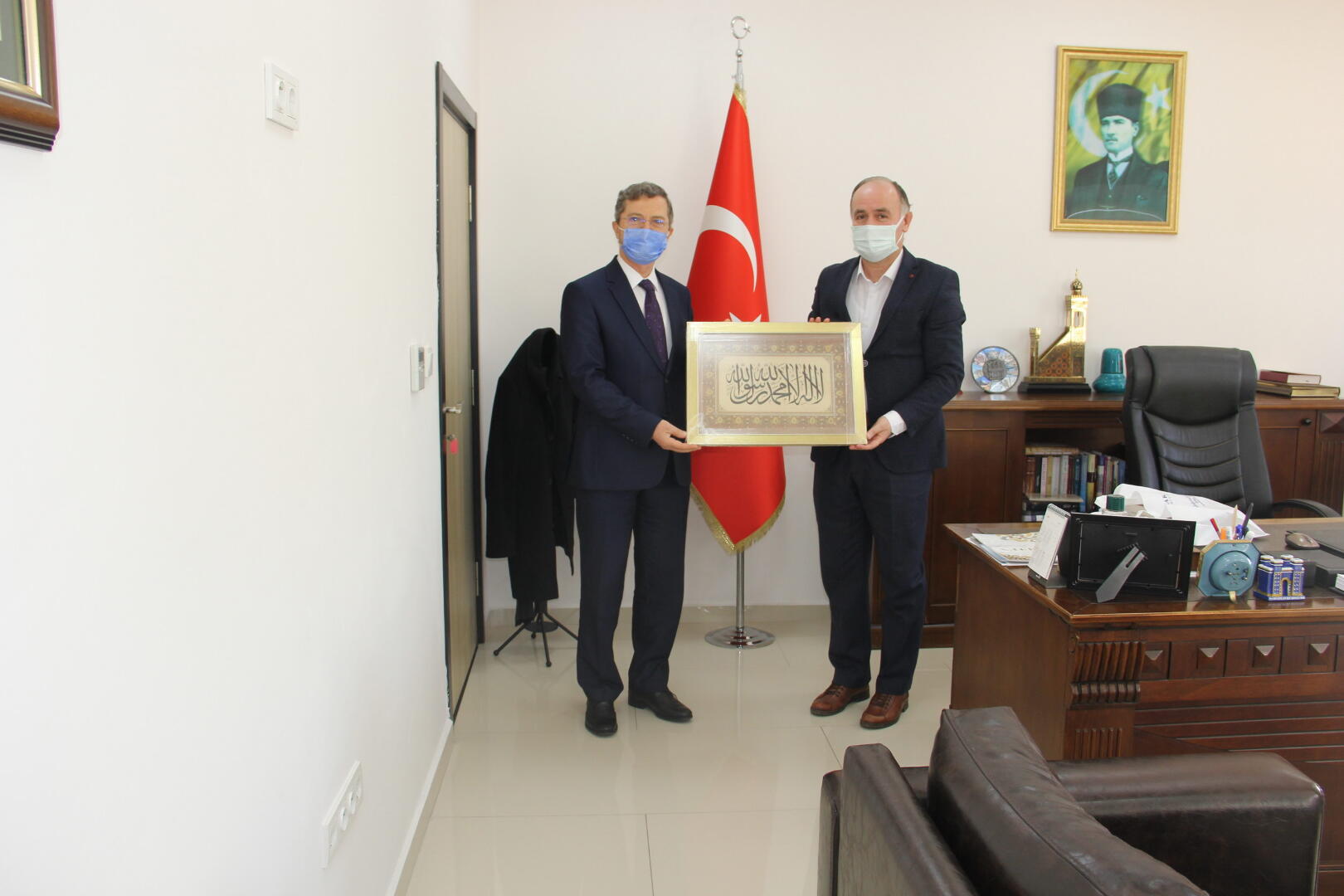 İlahiyat Fakültesi Dekan Yardımcıları Dr. Öğr. Üyesi Şükrü Şirin ve Dr. Öğr. Üyesi Ahmet Numan Ünver’in de hazır bulunduğu ziyaret, İlahiyat Fakültesi Dekanı Prof. Dr. Ahmet Bostancı ve Sakarya Müftüsü Hasan Başiş’in karşılıklı hediye takdiminin ardından sona erdi.