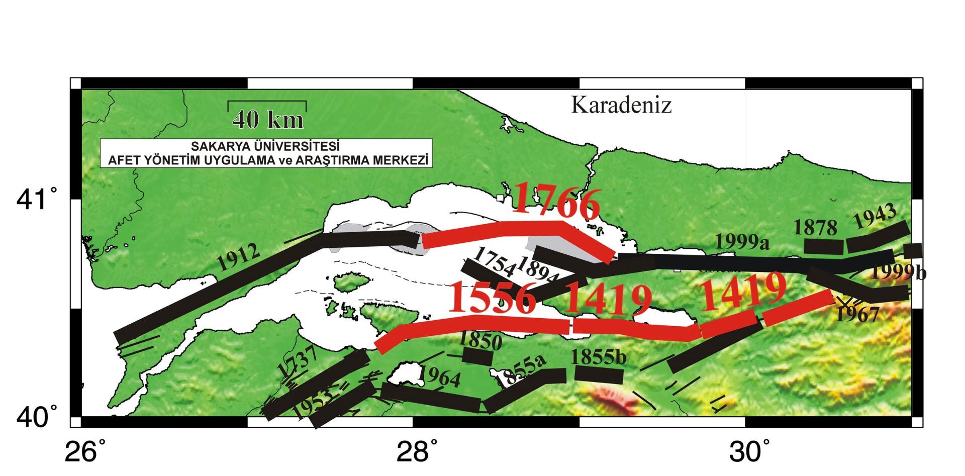 1999 İzmit-Adapazarı depremini üreten Kuzey Anadolu Fay Zonu (KAFZ), Sakarya İlinin de içinde bulunduğu Marmara Bölgesi’nde 3 kol halinde uzanmakta ve önemli bir deprem tehlikesine neden olmaktadır (Harita 1). Bölgede, son 1600 yıl içinde büyüklükleri M 6.8 ve daha büyük olan 41 deprem, sadece geçtiğimiz yüzyıl içinde ise büyüklüğü M 6.8 ve daha büyük 8 deprem ve büyüklüğü M 5.0 ve daha büyük 53 deprem meydana gelmiştir. KAFZ’nun Kuzey Kol’u Düzce ili Gölyaka ilçesi ile Marmara Denizi altındaki Çınarçık Havzası’na (Harita 1) kadar olan kesimi 1999 İzmit depreminde kırılmıştır (Harita 2) ve 20. yıl dönümünde dahi kayıplarımızın acısının halen tazeliğini koruduğu asrın felaketine neden olmuştur. Kuzey Kol’un Mudurnu vadisinden geçen kısmı ise, 1957 Bolu-Abant ve 1967 Adapazarı depremlerinde kırılmıştı (Harita 2).
