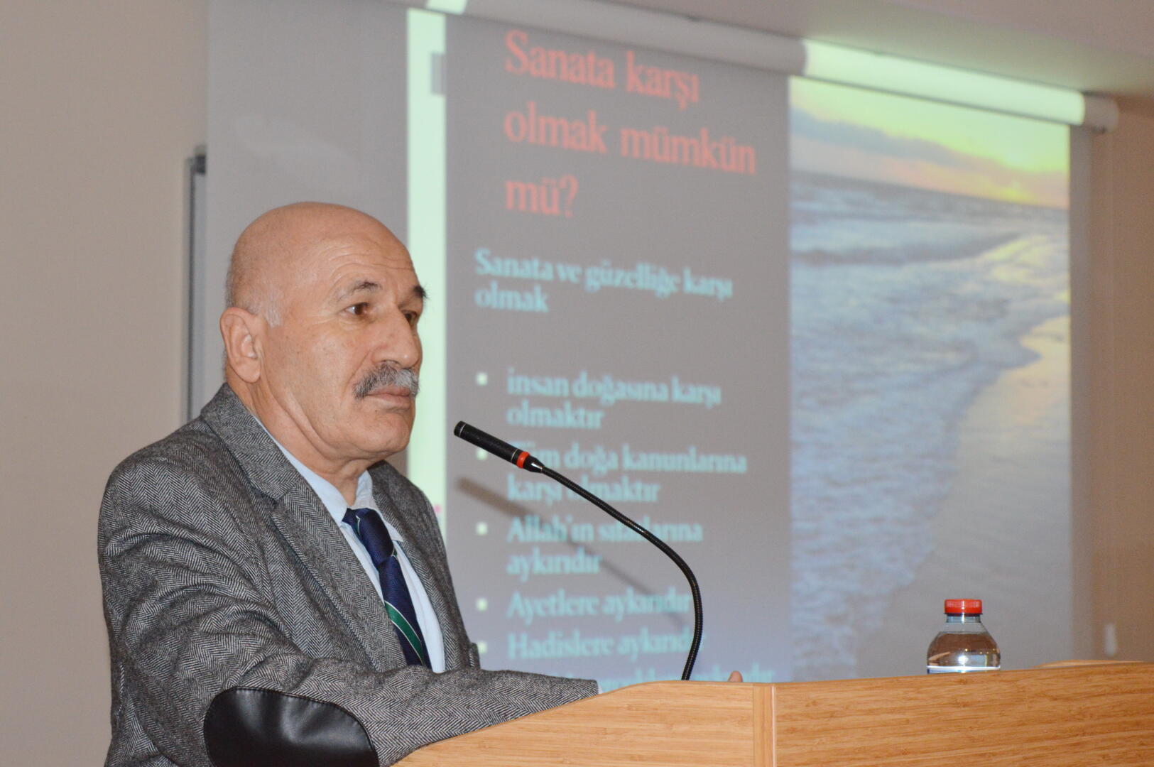Günümüz İslâm dünyasında yan yana getirmekte oldukça güçlükle karşılaşılan kavramlar arasında İslam ile sanat olduğunu dile getiren Prof. Dr. Çam, “İslamiyet’te sanata karşı hiçbir kötü hadis yoktur. Sanata düşmanlık İslam’a ve insana karşı olmaktır. Sanatı olmayan bir medeniyet yoktur. Maksadı ve programı olmayan bir medeniyet yoktur. Roma’nın, Yunan’ın, Osmanlı’nın her medeniyetin bir sanat anlayışı vardır” diye konuştu.
