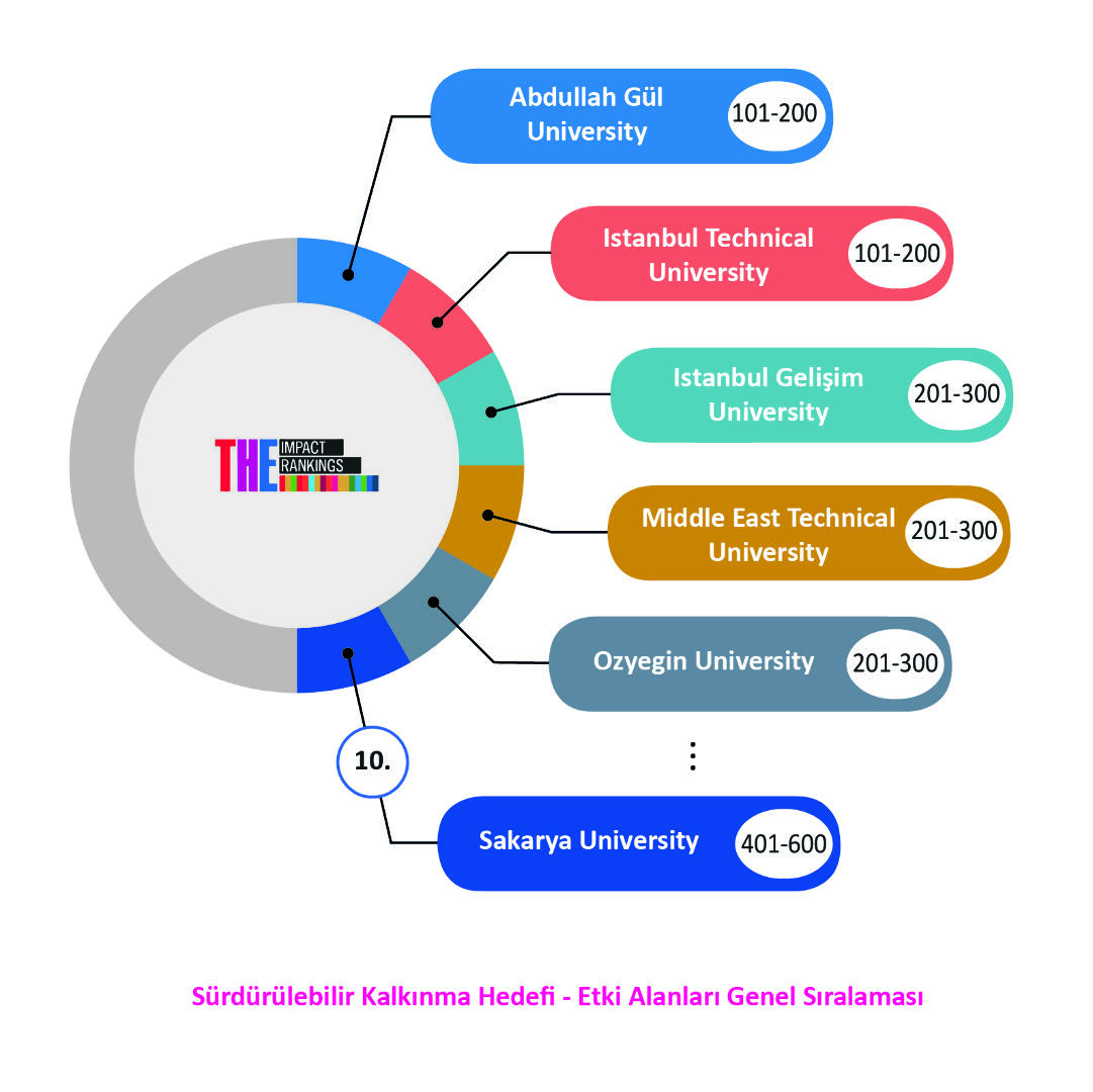 Birleşmiş Milletler (BM) tarafından belirlenen ‘17 Sürdürülebilir Kalkınma Hedefi’ doğrultusunda yükseköğretim kurumlarının performanslarının değerlendirildiği Etki Alanları Genel Sıralamasında Sakarya Üniversitesi sürdürülebilirlik faaliyetleri ile bin 115 üniversite arasında 401-600 bandına yerleşti, Türkiye Üniversiteleri arasında ise 10’uncu sırayı paylaştı.