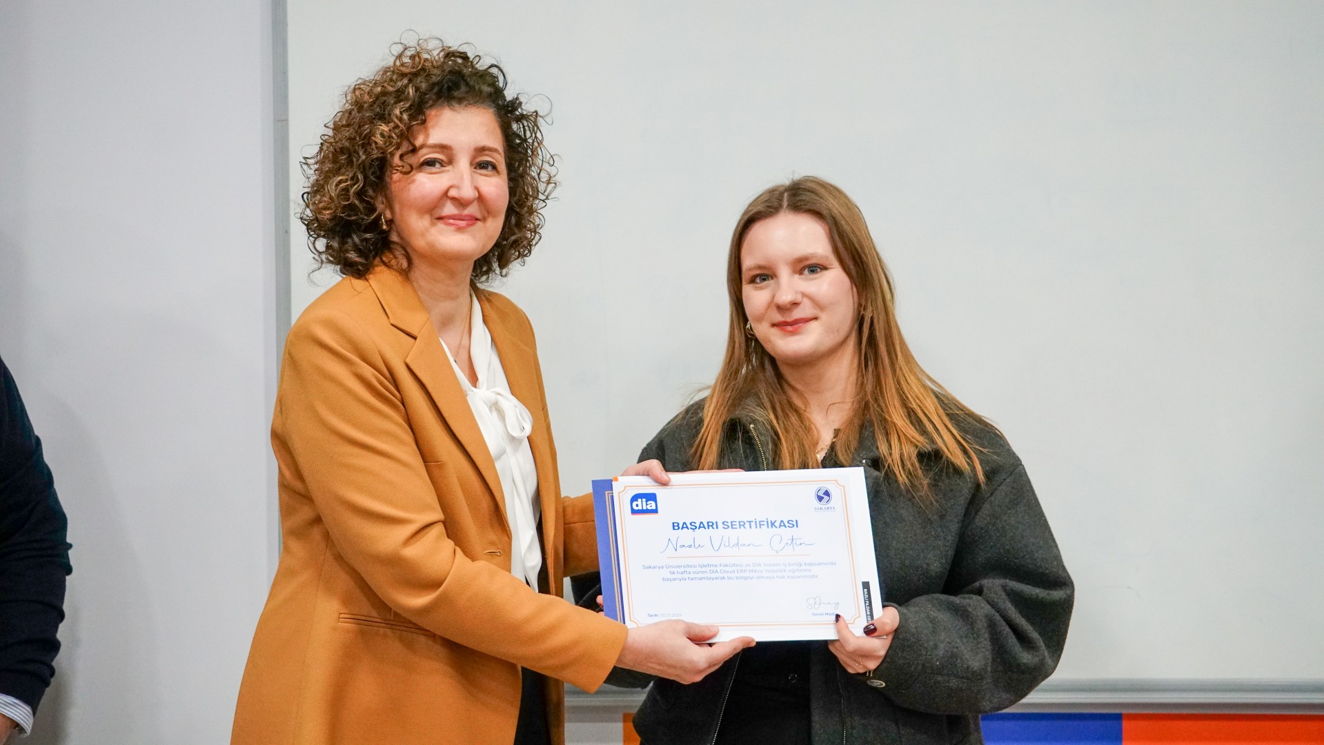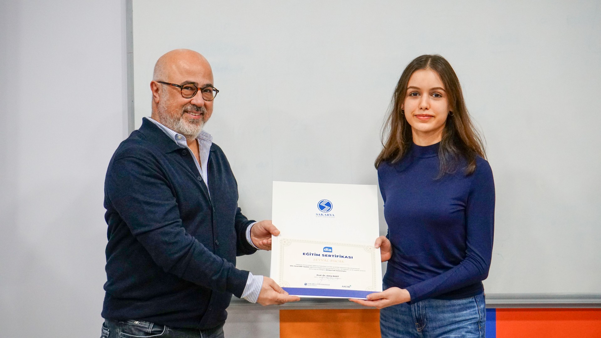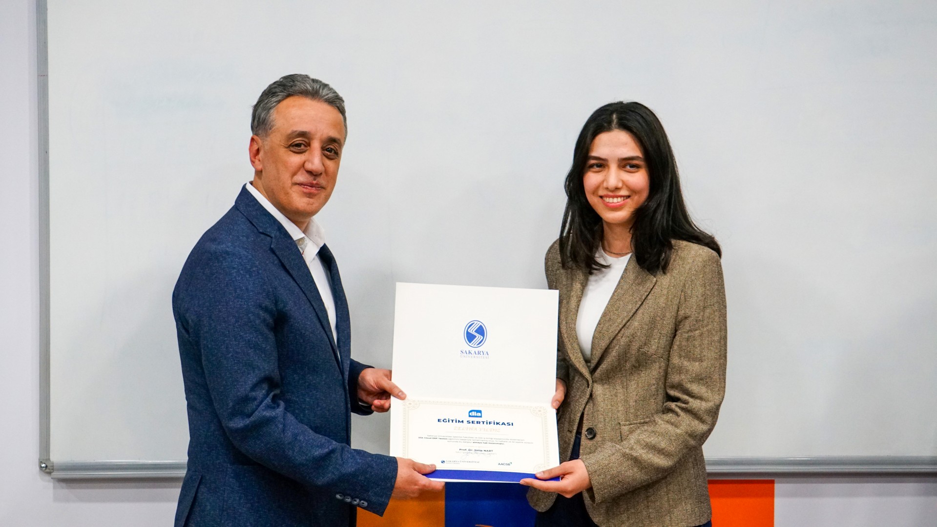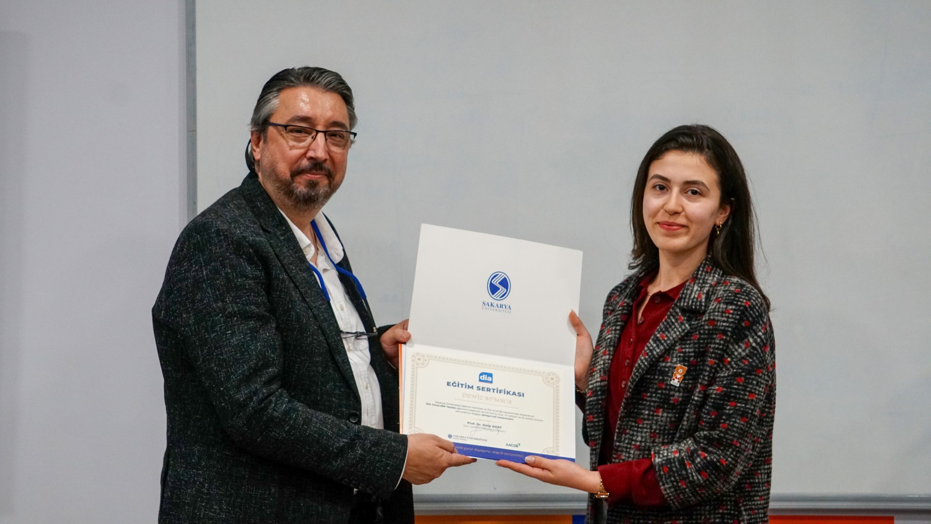 Eğitimi başarıyla tamamlayan öğrencilerin belgeleri, İşletme Fakültesi Dekanı Prof. Dr. Sima Nart, Dekan Yardımcıları Prof. Dr. Özlem Balaban ve Dr. Öğr. Üyesi Hüseyin Burgazoğlu, İşletme Fakültesi Danışma Kurulu Başkanı Ali İhsan Güneş, Danışma Kurulu Üyeleri Adnan Borazancıoğlu, Özgür Koca ve Suat Gürsoylu, DIA Satış Direktörü Mustafa Kemal Palancı, Satış Destek Müdürü Sakine Gürel, ERP Proje Uzmanları Ecem Narlı, Erhan Çınar, Ahmet Can Hacıoğlu, Pazarlama Müdürü Eray Özcan, Pazarlama Uzmanı Gözde Sünbül Şan ve Umay Tüm Bilişim Kurucusu Aycan Fırtın tarafından takdim edildi.