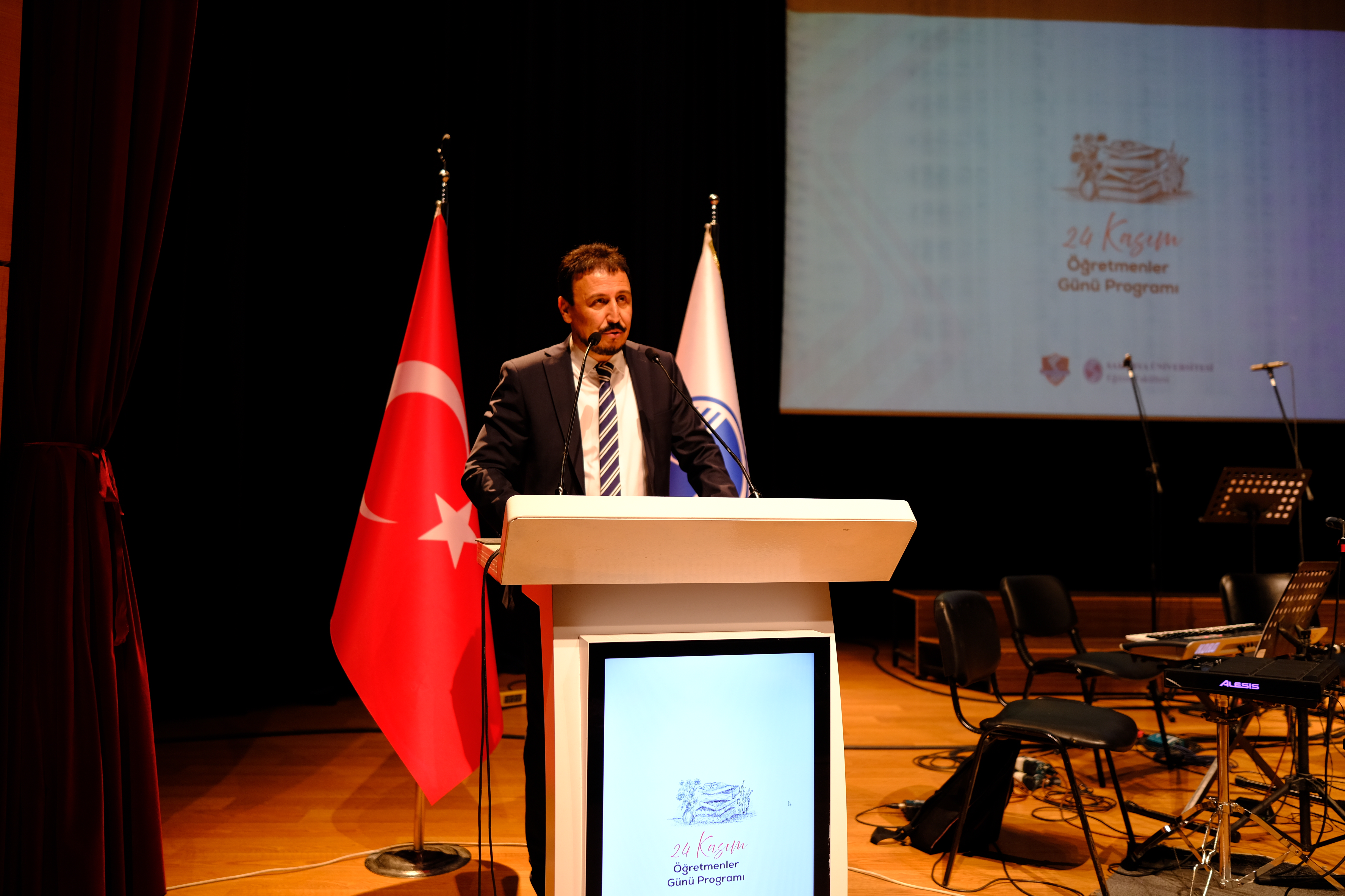 Ardından Eğitim Fakültesi Dekanı Prof. Dr. Hüseyin Çalışkan, konuşmasına Atatürk’ün “Dünyanın her tarafında öğretmenler insan topluluğunun en özverili ve saygıdeğer unsurlarıdır” sözleriyle başladı. Kendi meslek hayatından kesitler sunarak öğretmenliğin bir "gönül yolculuğu" olduğunu belirten Çalışkan, üniversite üst yönetimine ve eğitim fakültesine öğretmen yetiştirme süreçlerine verdikleri güçlü destekten ötürü teşekkür etti.