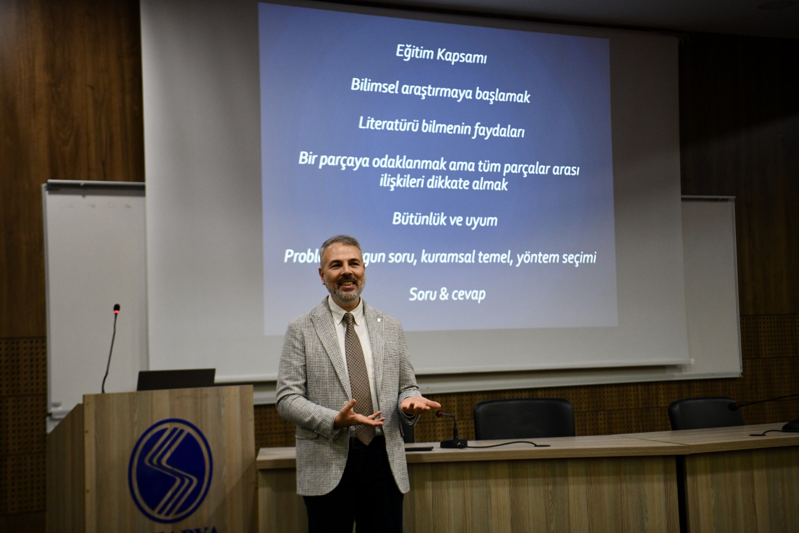 Sakarya Üniversitesinde düzenlenen eğitimde, bilimsel araştırmalarda kavramsal ve kuramsal çerçeve oluşturmanın, yöntem ve ölçme aracı seçimiyle birlikte nasıl tutarlı bir bütün oluşturması gerektiği ele alındı.