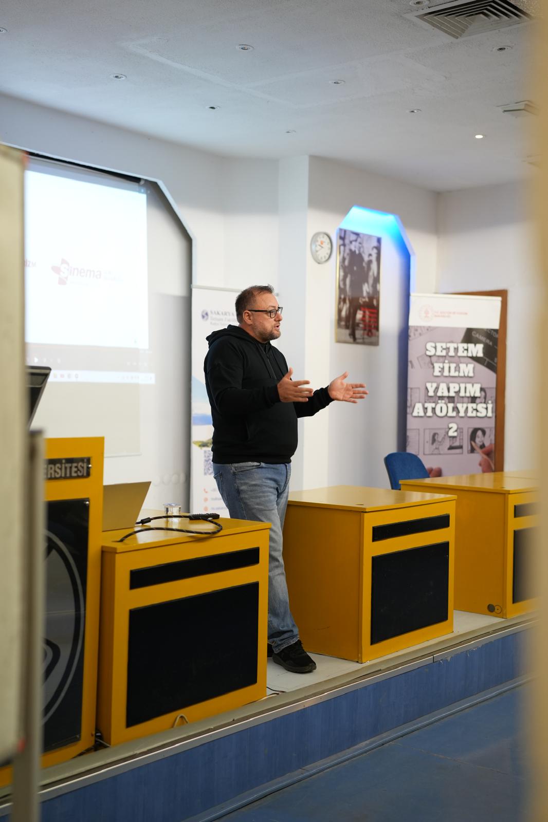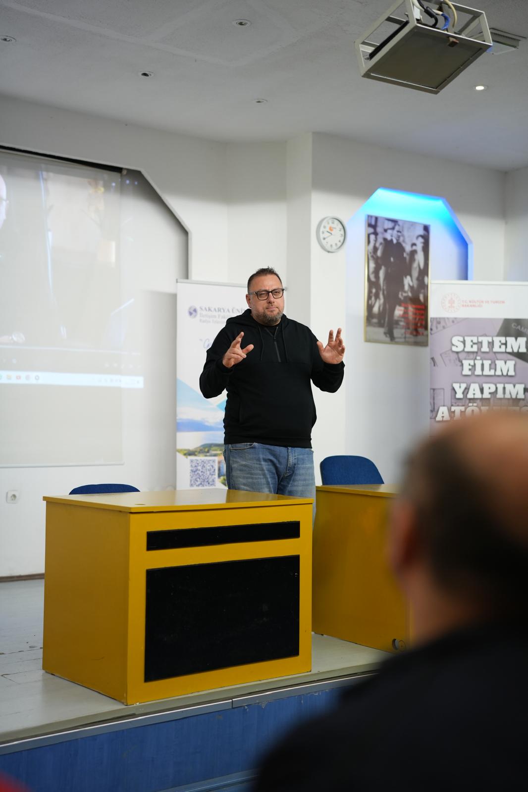 Sakarya Üniversitesi İletişim Fakültesi Radyo, Televizyon ve Sinema Bölümü tarafından düzenlenen “SETEM Film Yapım Atölyesi-2”, M3 Konferans Salonunda iki oturum halinde gerçekleştirildi. Sinema ve Televizyon Eseri Sahipleri Meslek Birliğini (SETEM) temsilen programa katılan senarist ve yapımcı Orhan Koçak, öğrencilerle bir araya gelerek sektör deneyimlerini aktardı.