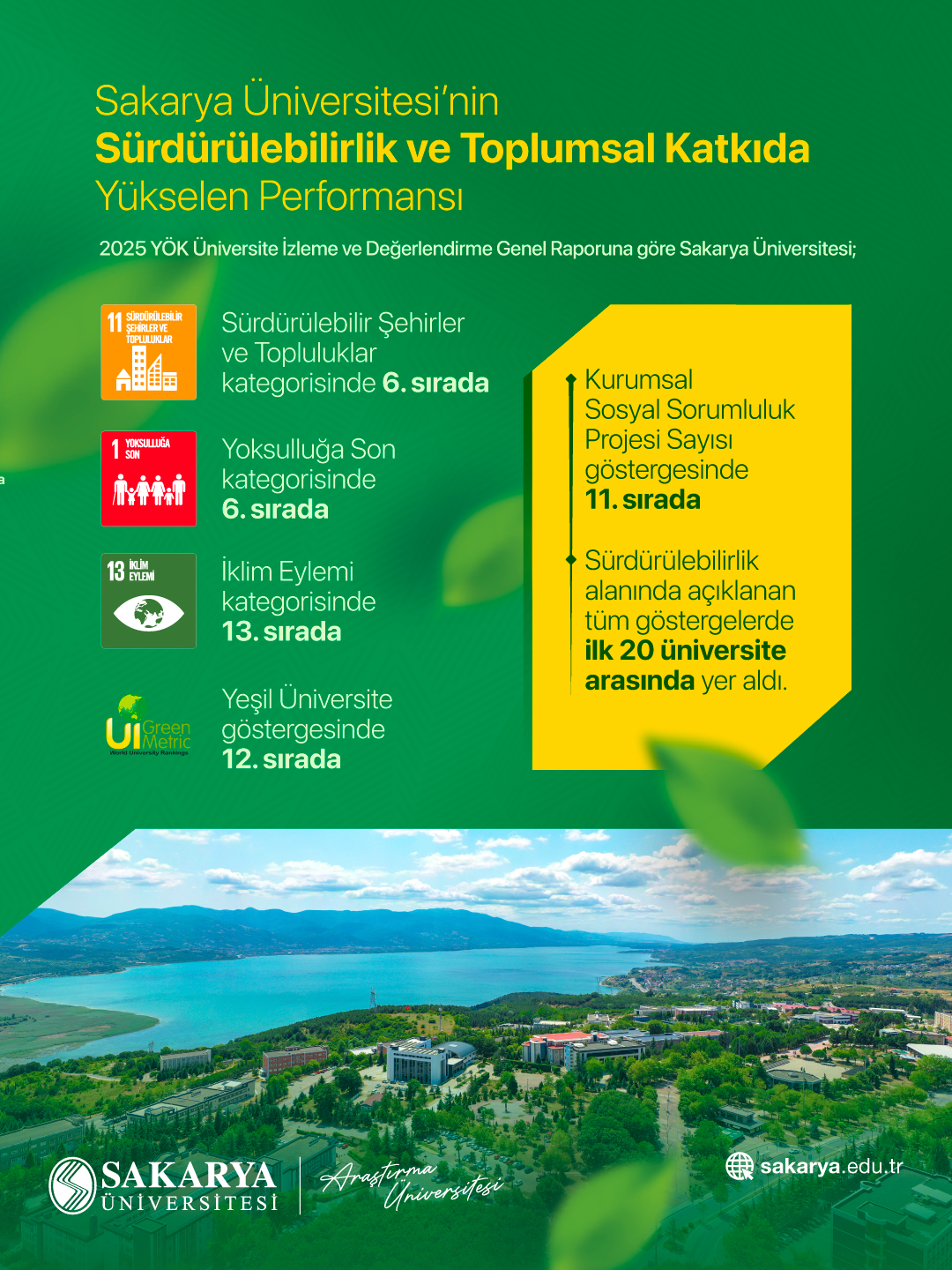 Sakarya Üniversitesi, 2025 YÖK Üniversite İzleme ve Değerlendirme Genel Raporuna göre sürdürülebilirlik ve toplumsal katkı alanında dikkat çekici bir performans sergiledi. SAU, “Sürdürülebilir Şehirler ve Topluluklar” ve “Yoksulluğa Son” kategorilerinde Türkiye’de 6’ncı sırada yer aldı.