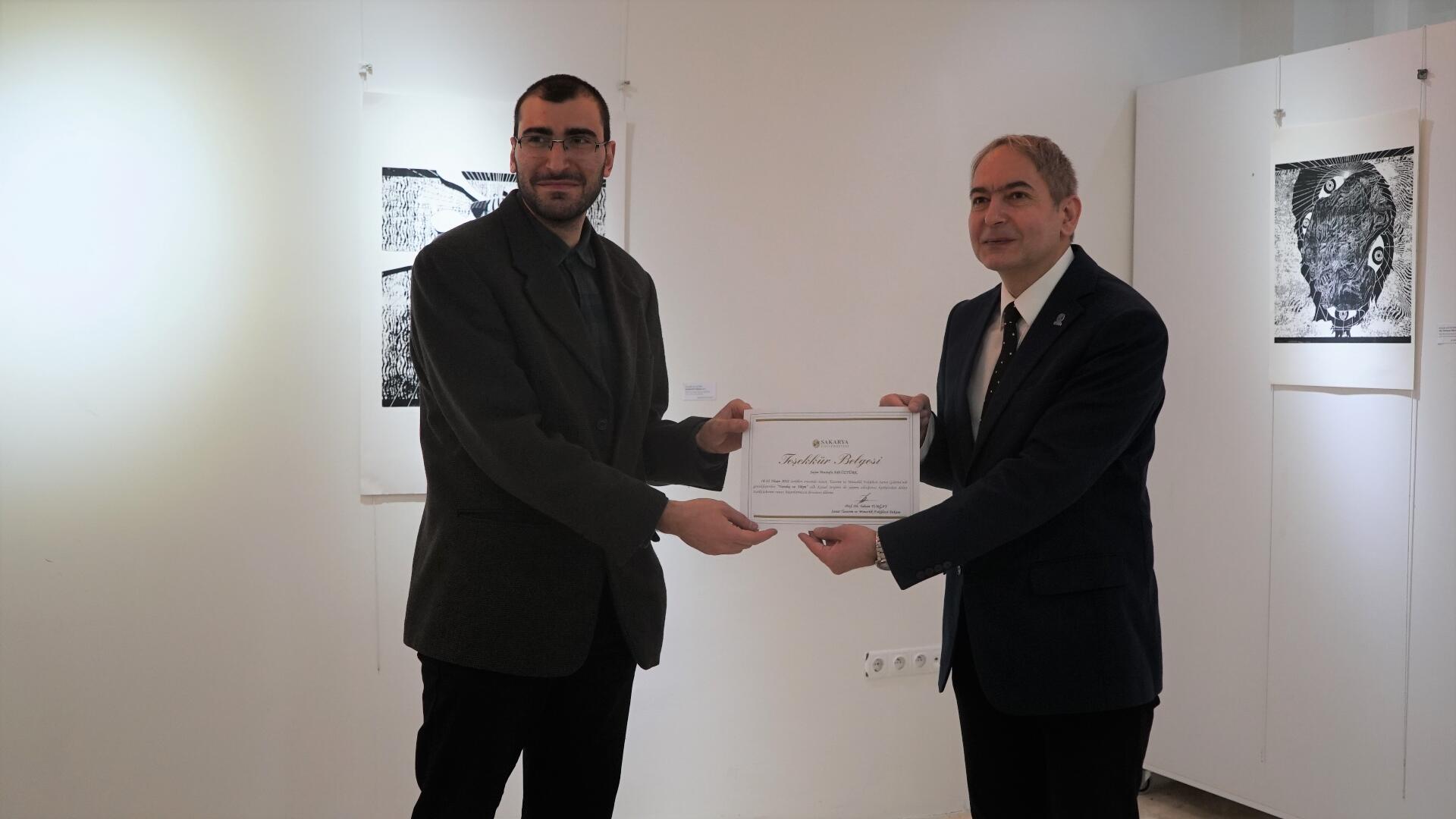 Sakarya Üniversitesi (SAÜ) Sosyal Bilimler Enstitüsü sanatta yeterlilik öğrencisi Mustafa Adil Öztürk’ün “Varoluş ve Yıkım” kişisel sergisi açıldı.